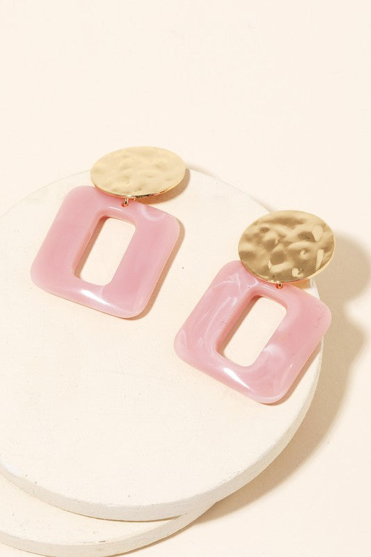 Sold outMETALLIC CIRCLE CUTOUT DROP EARRING