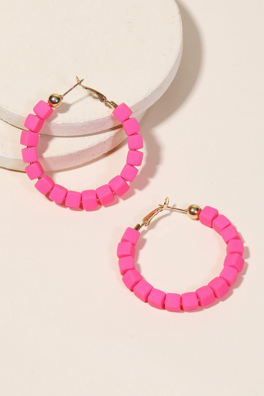 TRIANGLE CUTOUT BEADED FRINGE EARRING