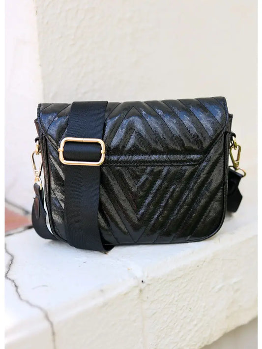 ANGELA QUILTED CROSSBODY - SHIMMER BLACK