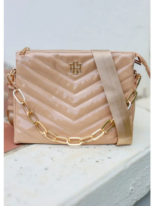 ARIANA QUILTED CROSSBODY - NUDE PATENT