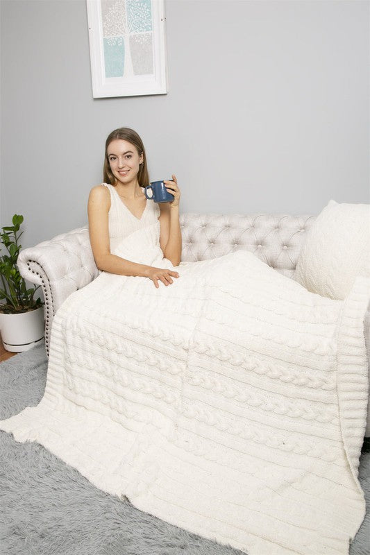 Sold outBRAIDED CABLE KNIT THROW BLANKET