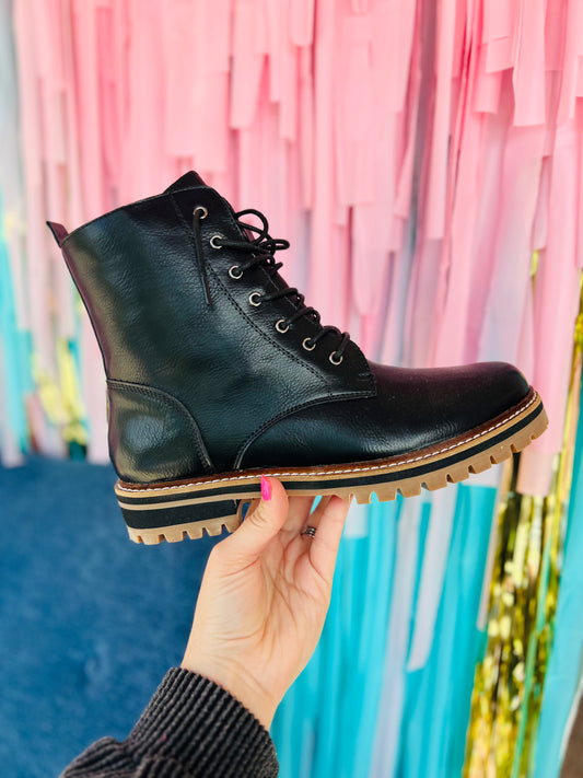 SUEDE or FAUX LEATHER & WOOD COMBAT BOOTS
