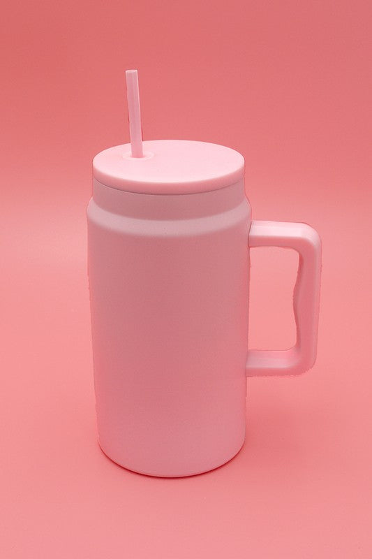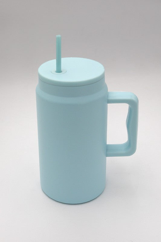 This 50oz stainless steel tumbler is perfect for those who demand style and sophisticated design. Offering double wall construction for greater insulation, as well as an ergonomic comfort-grip handle and BPA-free materials, you can easily carry your favorite hot or cold beverage all day long. Lid and straw included.