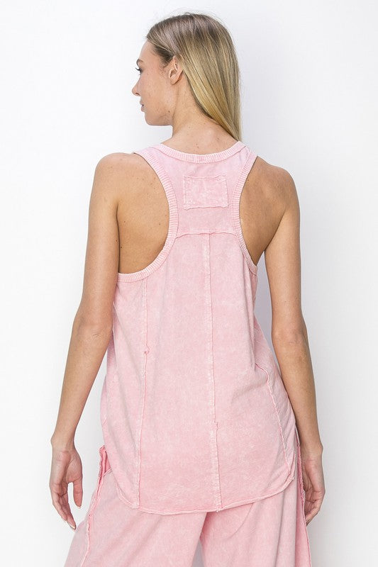 This Mineral Wash Racerback Sleeveless Tank is expertly crafted with a mineral-washed fabric for a unique and stylish look. Made with a relaxed fit, it provides optimal comfort and allows for easy movement during workouts. Its racerback design adds a touch of femininity while also providing extra ventilation. Perfect for any active lifestyle, this tank is a must-have addition to your wardrobe.