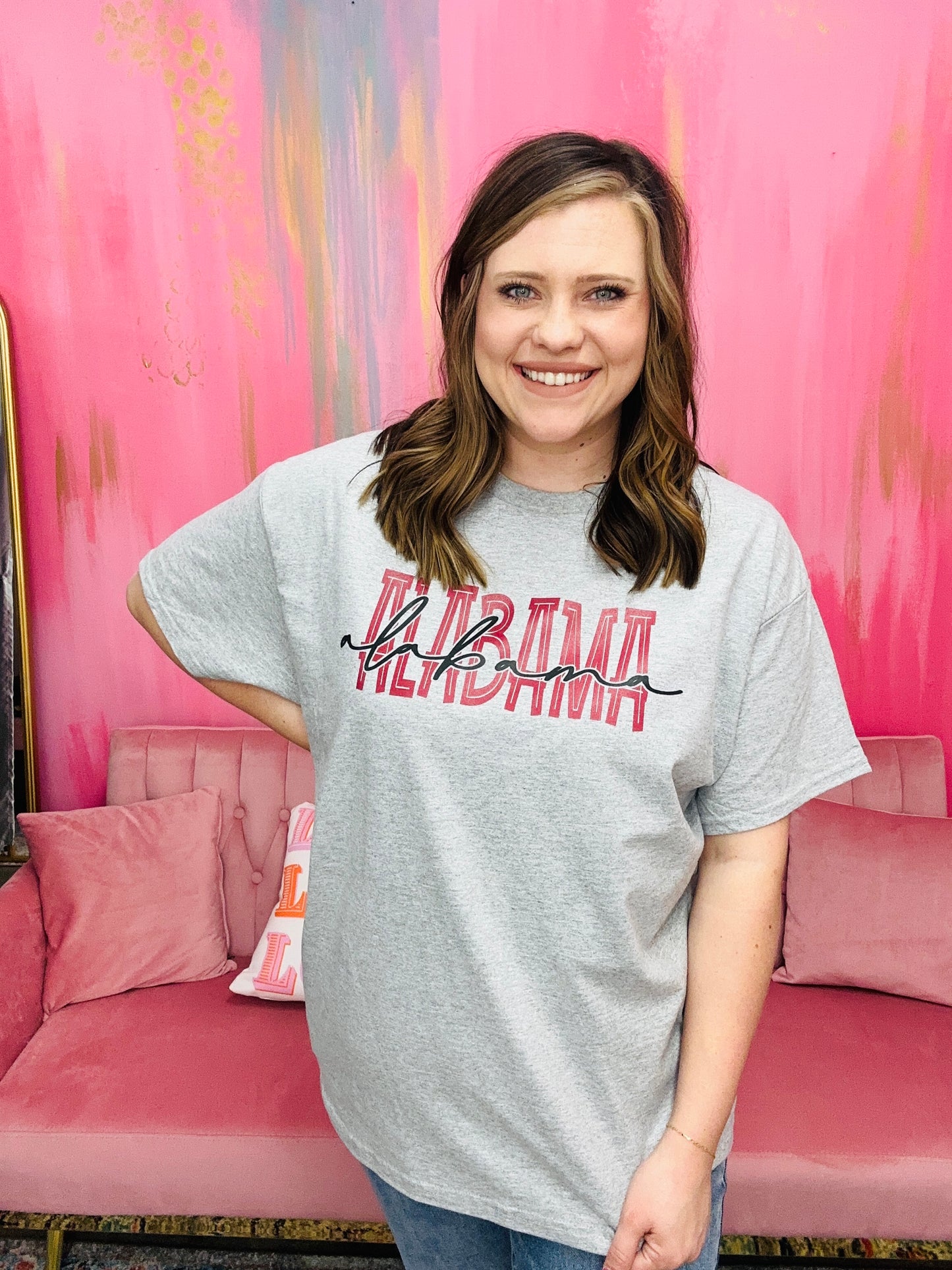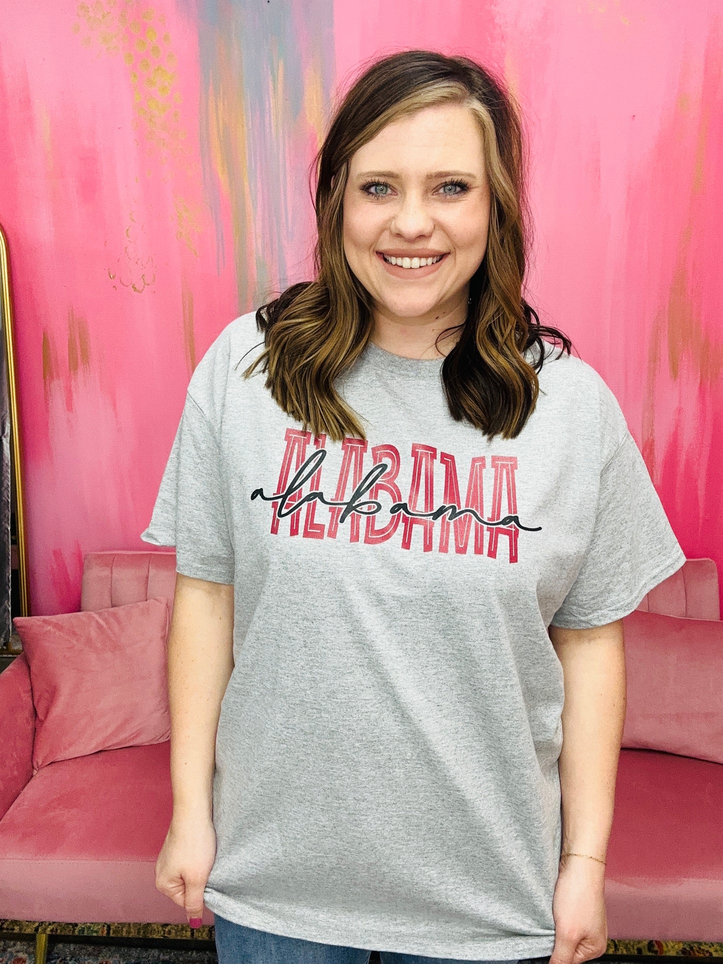 This ALABAMA CURSIVE GRAPHIC TEE is the perfect way to show your state pride. Crafted from a comfortable cotton blend fabric, it features a bold Alabama cursive graphic on a sport gray background for an unmistakable look.