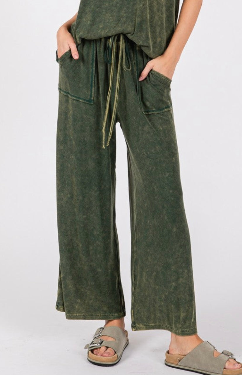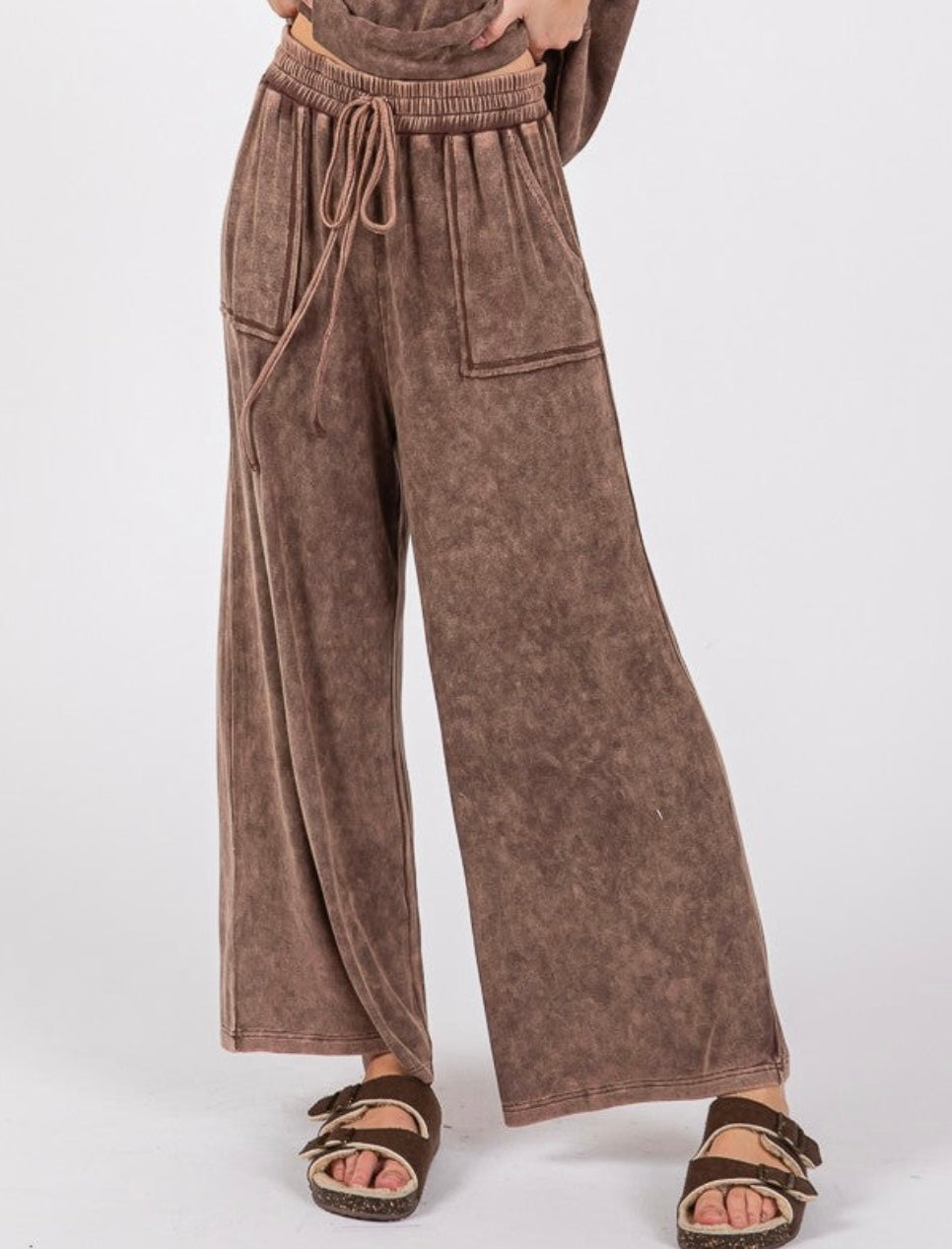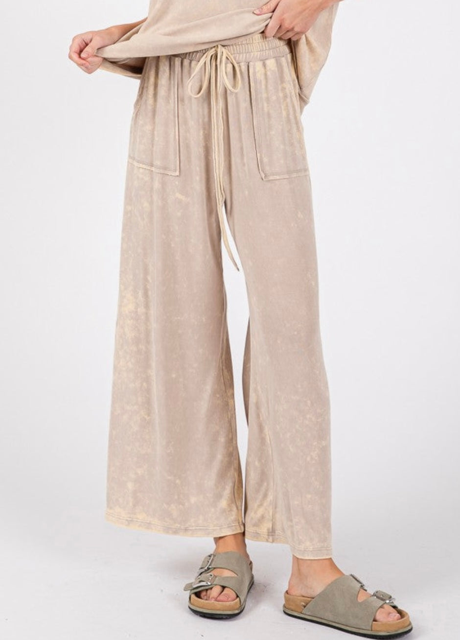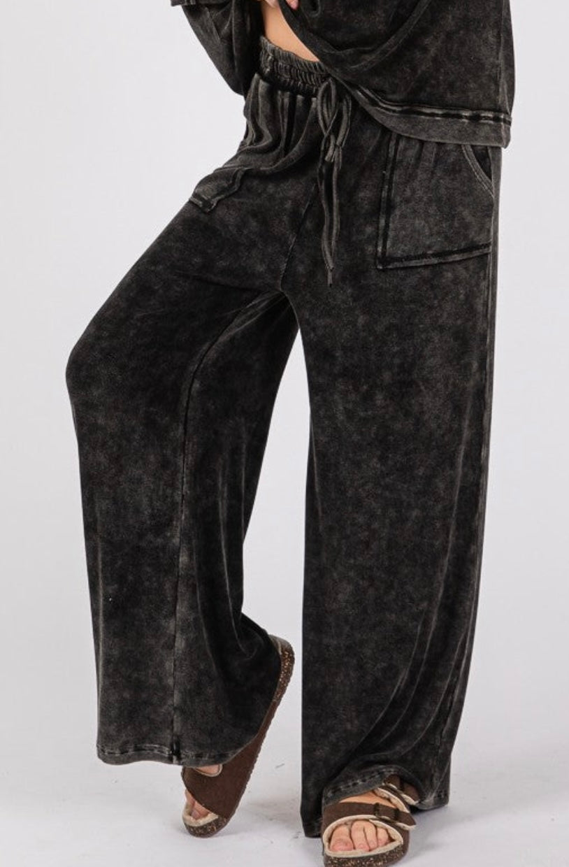 These pants feature a relaxed fit and an elastic waistband for optimal comfort. The mineral-washed fabric adds an edgy touch, allowing for versatile styling options. Perfect for dressing up or down, these pants provide both comfort and style.