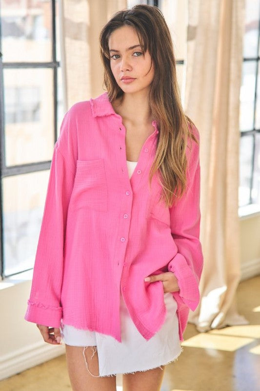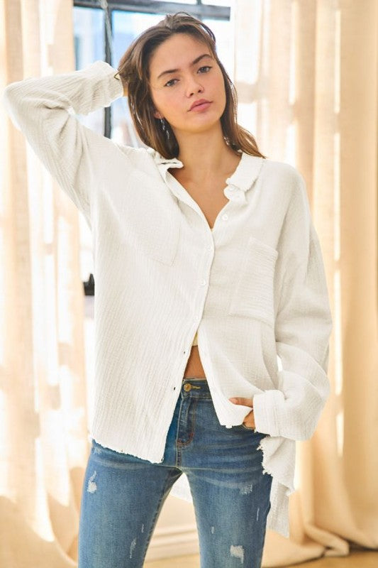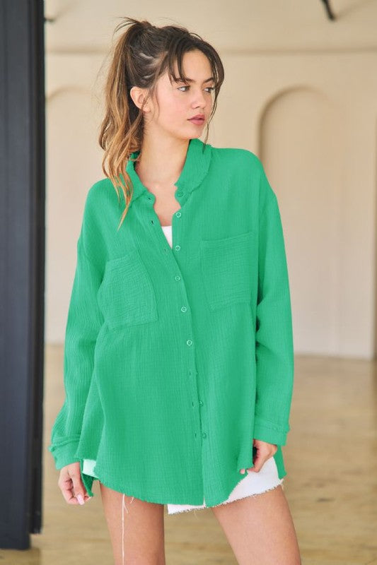 We decided to snag this up for yall in every color. These are solid button down long sleeve shirts. You will want to grab one of these for a beach cover up and one to wear all the time. These are great to wear over a bralette for summer.