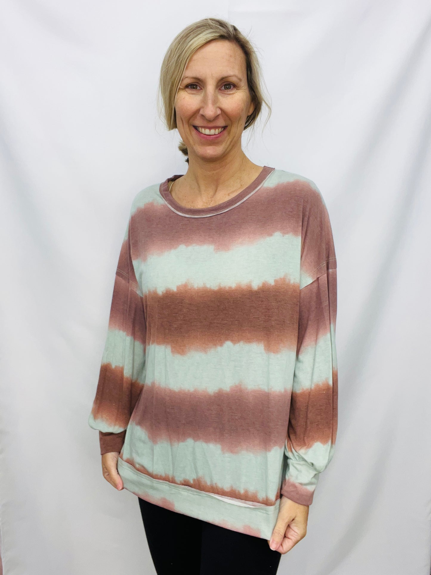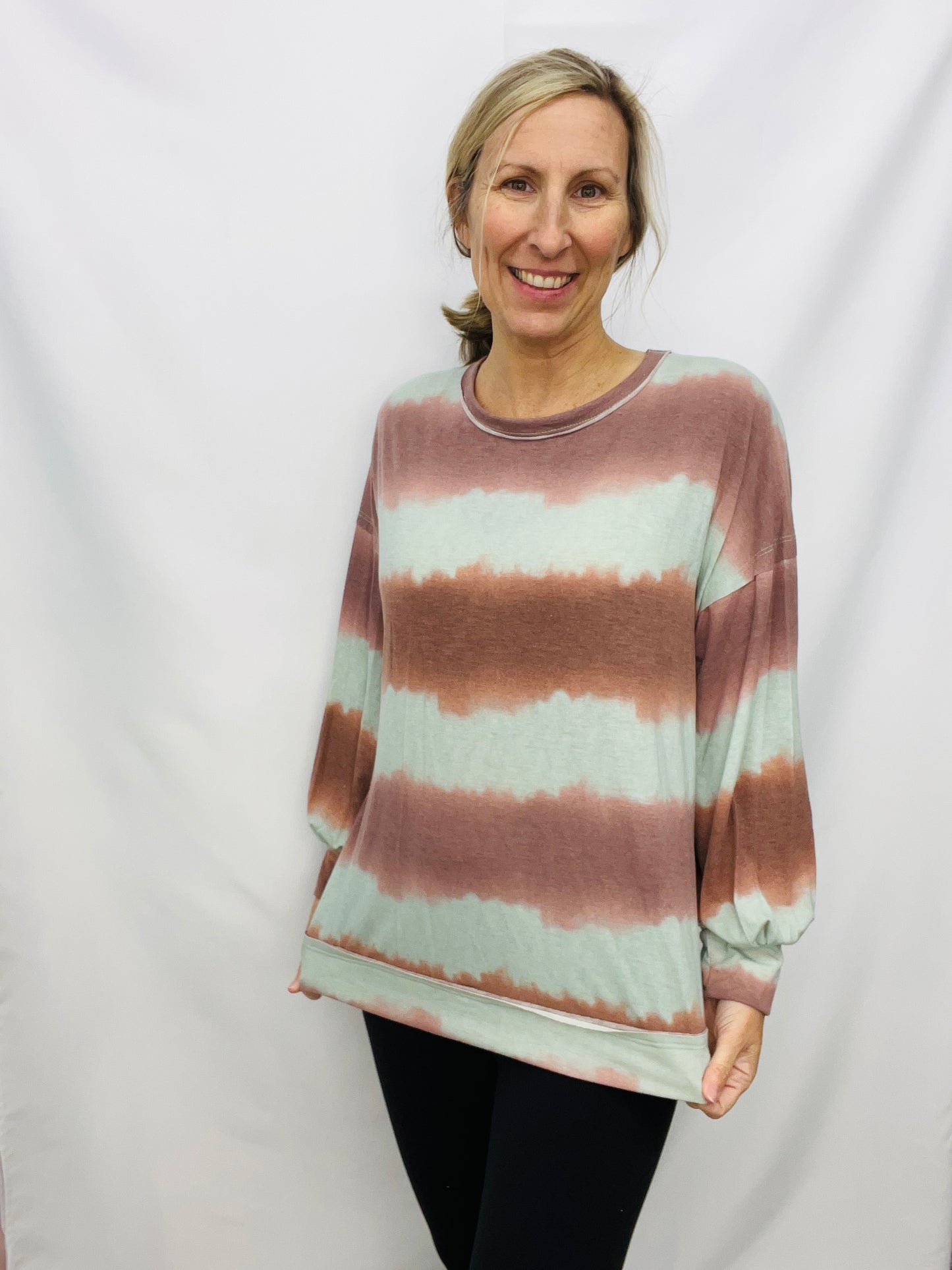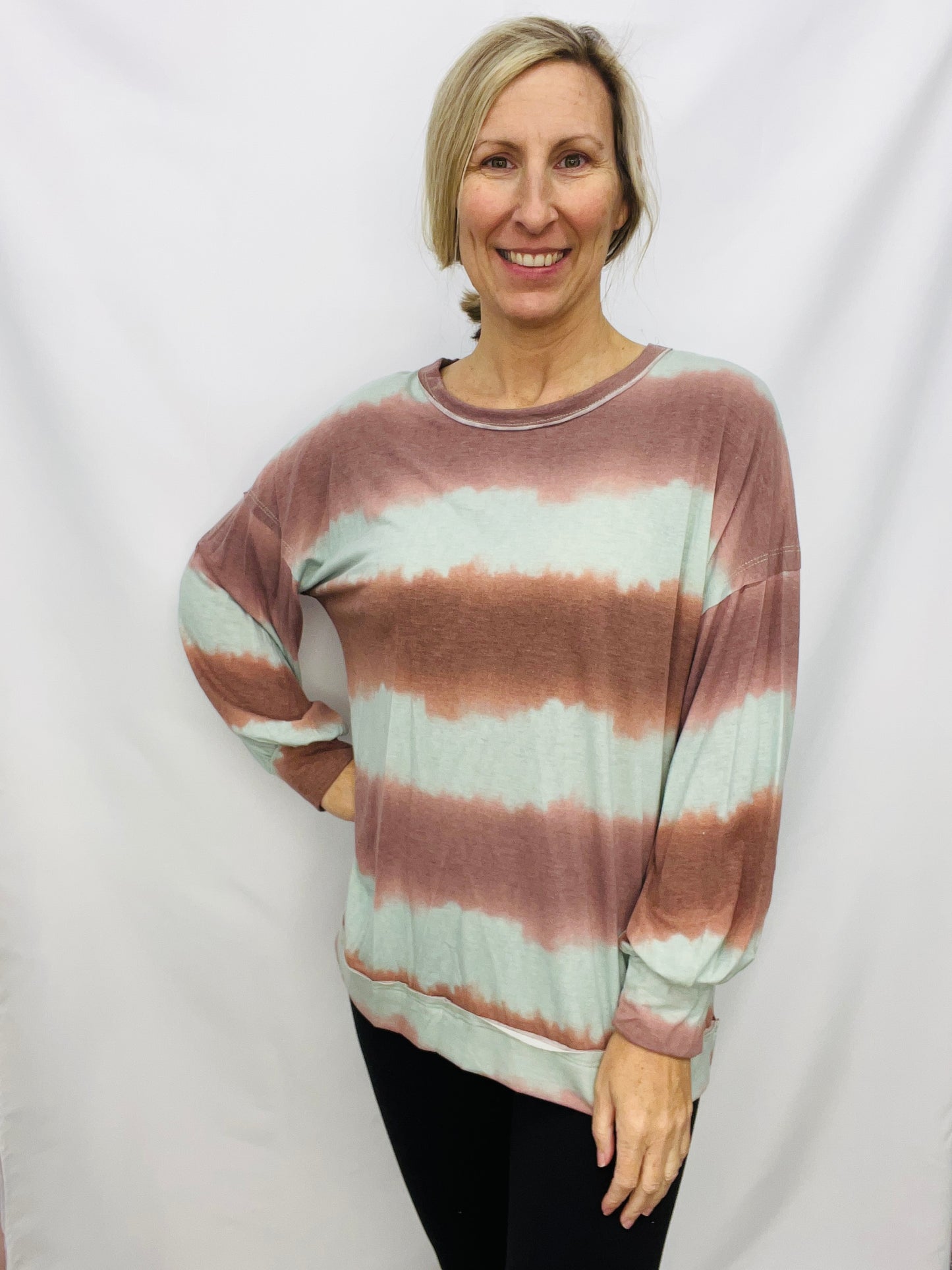 BLACK FRIDAY - WATERCOLOR STRIPE ROUND NECK LONG SLEEVE TOP
