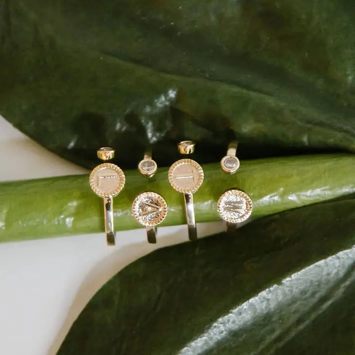 Our Bria initial rings are crafted with 18k gold plating and feature a glass stone accent. The size 7/8 rings are slightly adjustable, giving you a perfect fit. Treat yourself or someone special with a timeless piece of jewelry.