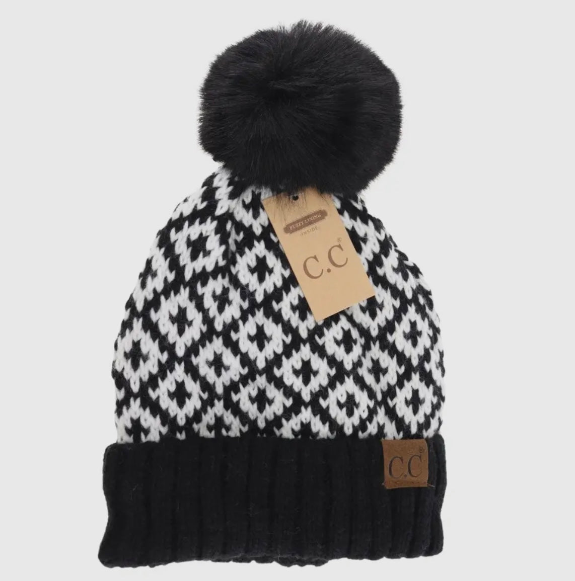 C.C DIAMOND PATTERNED BEANIE