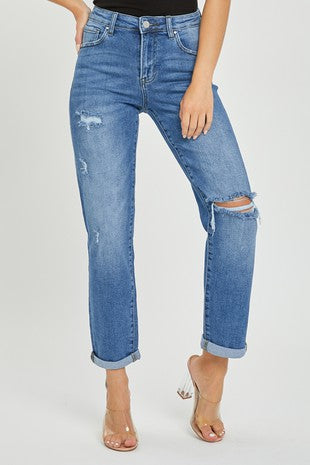 Made from high-quality denim, these high-rise slim girlfriend jeans offer the perfect fit and style. With a flattering slim silhouette and a comfortable high-rise waist, these jeans are perfect for any occasion. Upgrade your denim collection with these must-have jeans.