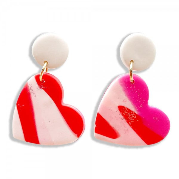 CLAY GLITTER HEART EARRINGS THAT ARE APPROXIMATELY 1.75" LONG.