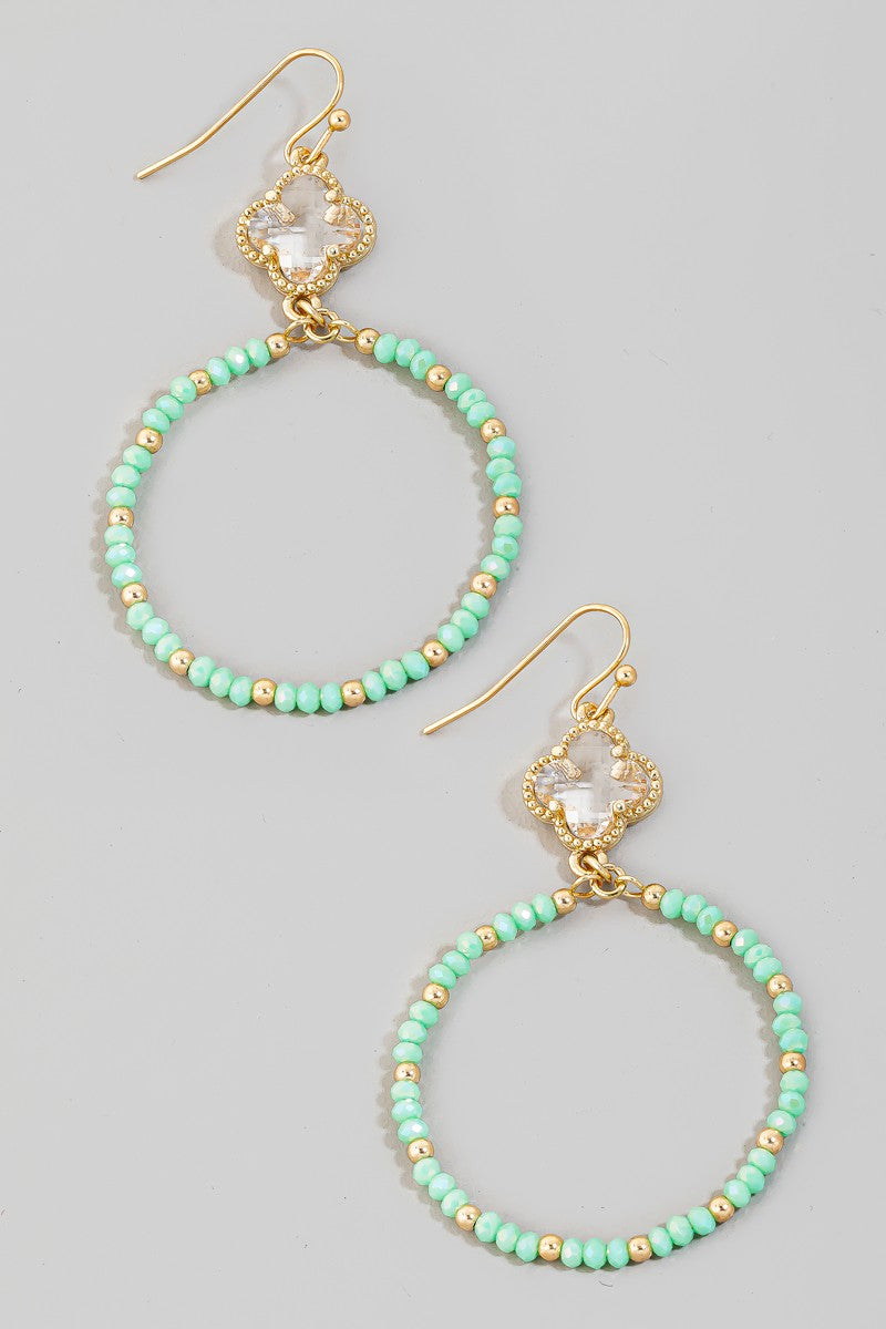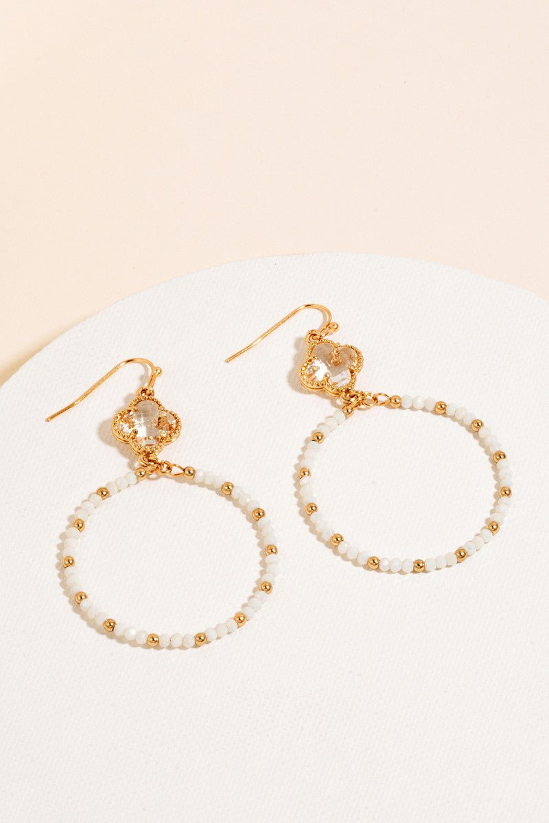 This pair of drop earrings brings a luxurious clover gem mini beaded hoop style. Experience the joy of accessorizing with this piece that effortlessly combines versatility and charm.