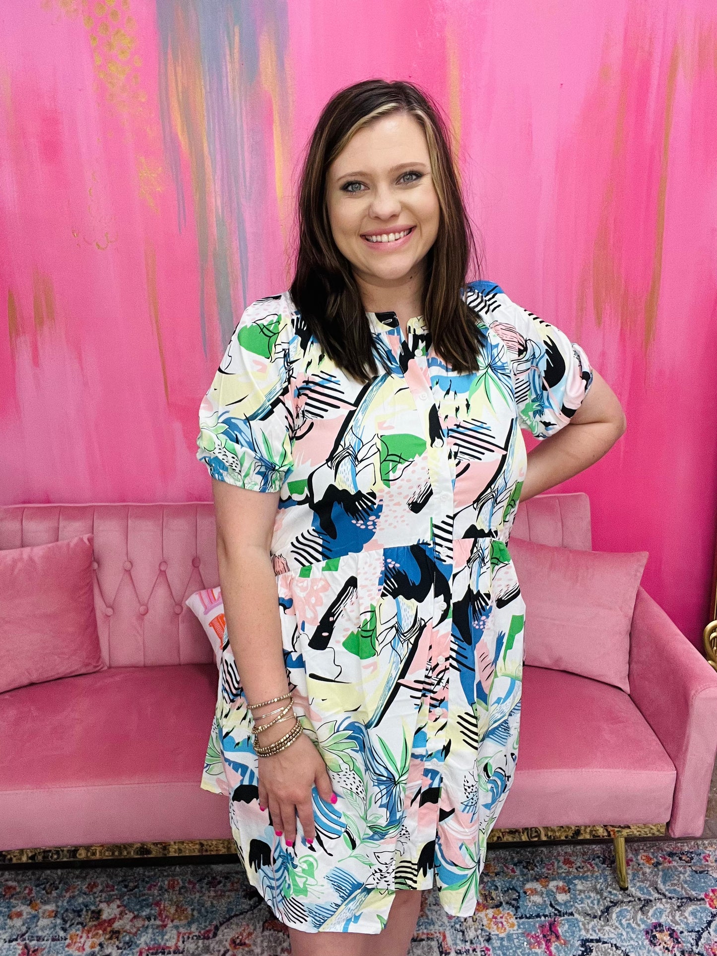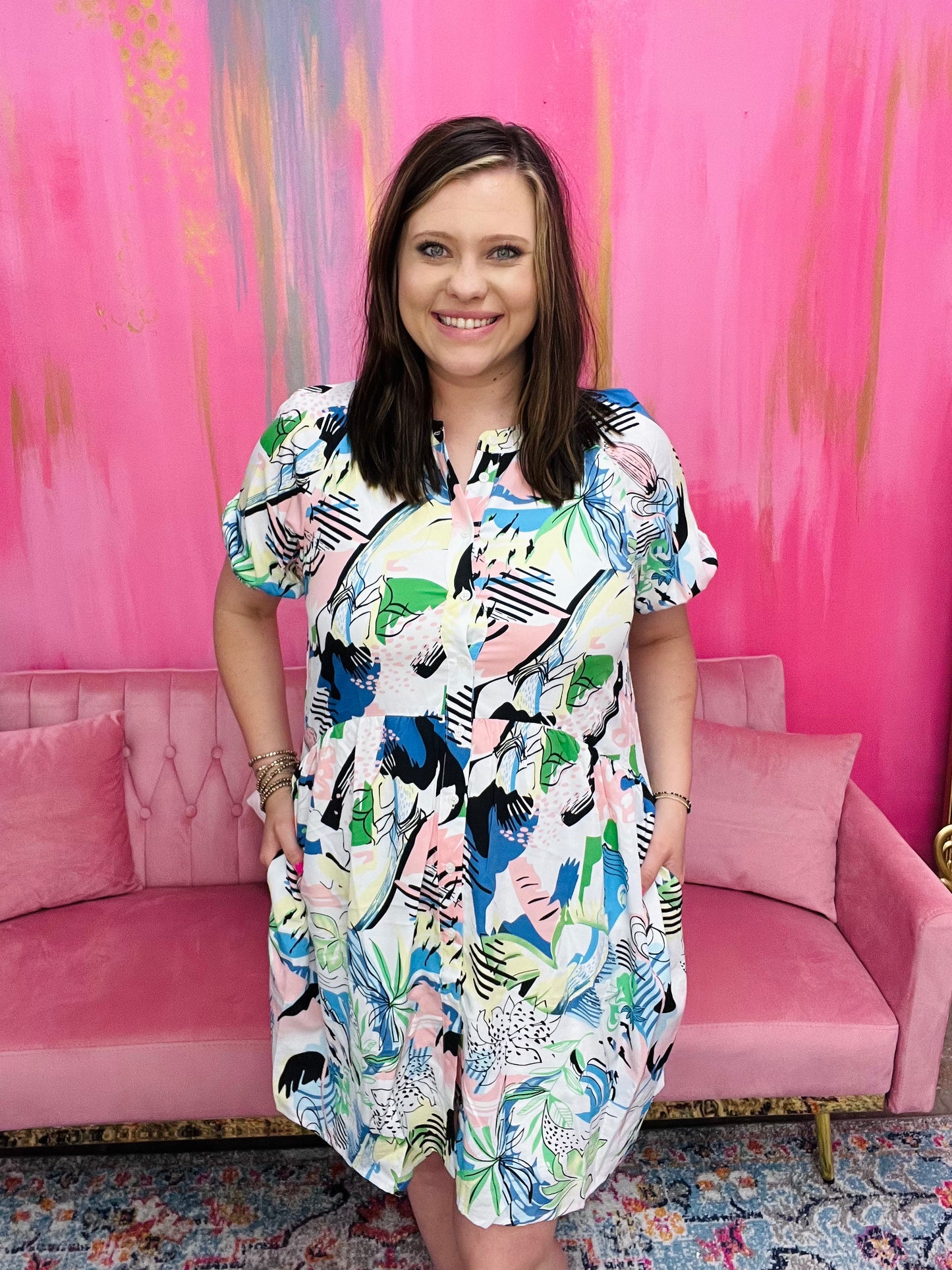 Look effortlessly stylish in the DAYDREAMING DRESS. Featuring a U-neck, short raglan sleeves, front pockets and a ruffled hemline, this lightweight and unlined print button-up dress is ideal for everyday wear. Keep cool and comfortable in the non-sheer fabric, perfect for staying fashionable in any season.