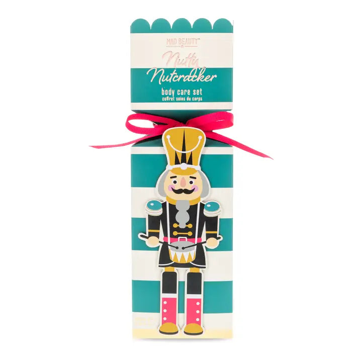 A fun and festive way to prepare skin for the party season! This charming gift set contains a body exfoliating puff and moisturizing body lotion. Lather up the body puff in the bath or shower for gentle exfoliation then lock in moisture with the lotion for irresistibly soft and smooth skin scented with the sweet aroma of vanilla. In a fun Nutty Nutcracker Christmas cracker style gift box.
