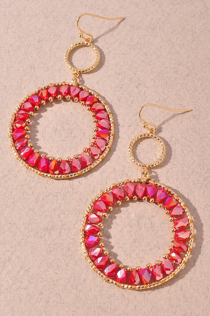 DOUBLE CIRCLE BEADED DANGLE EARRINGS
