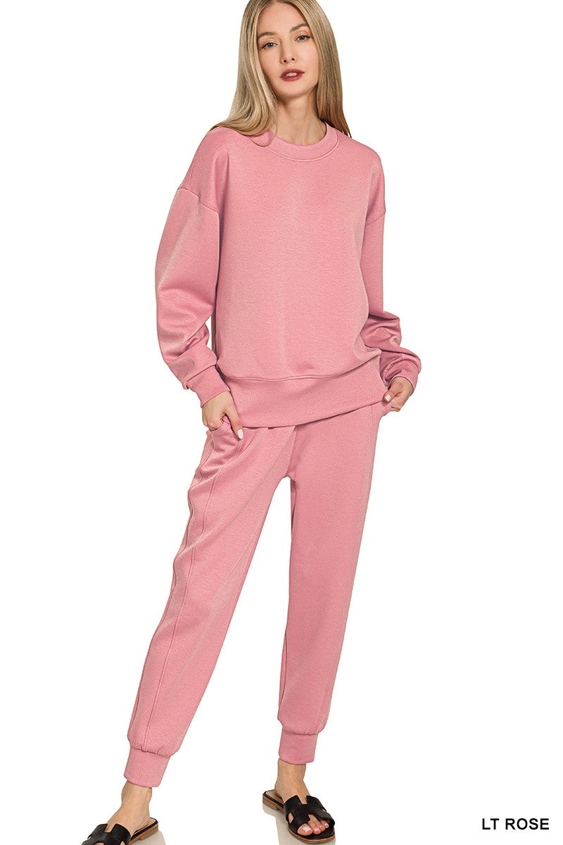 Engineered for comfort and versatility, this two-piece set combines a structured crewneck pullover with matching joggers for effortless everyday wear. The pullover features a classic crew neckline and refined construction, while the joggers offer a tapered silhouette with functional pockets and an adjustable drawstring waist. Premium fabric blend ensures durability and maintains its shape through repeated wear. Perfect for layering or wearing solo, this coordinated set delivers polished style whether you're running errands or relaxing at home.