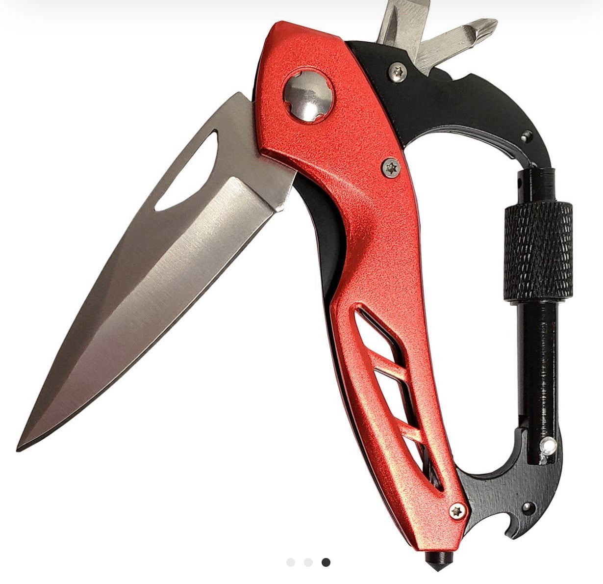 The FIX-IT CARABINER MULTI-TOOL is the perfect gift for any outdoorsy man. With its locking blade, carabiner, and various screwdrivers, it's an essential tool for any adventure. It even includes a glass breaker and keychain attachment. Give the gift of convenience and functionality for Father's Day or any occasion.