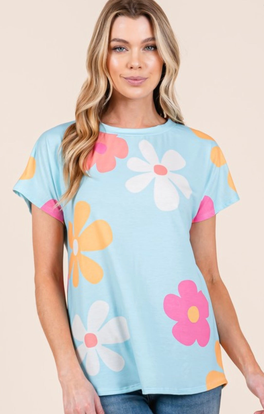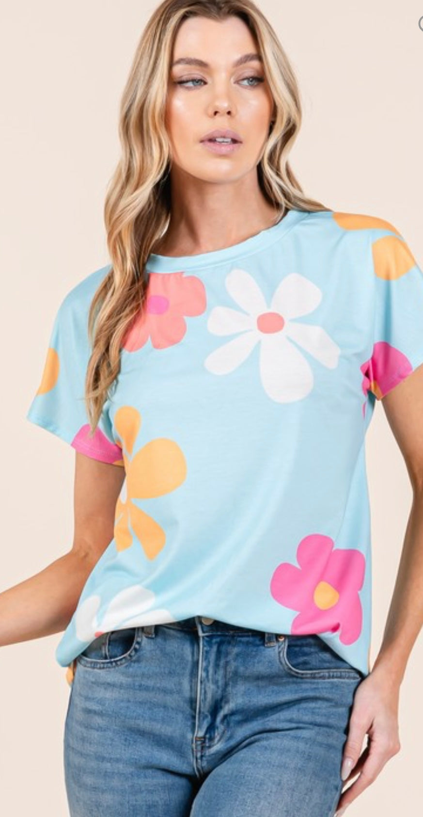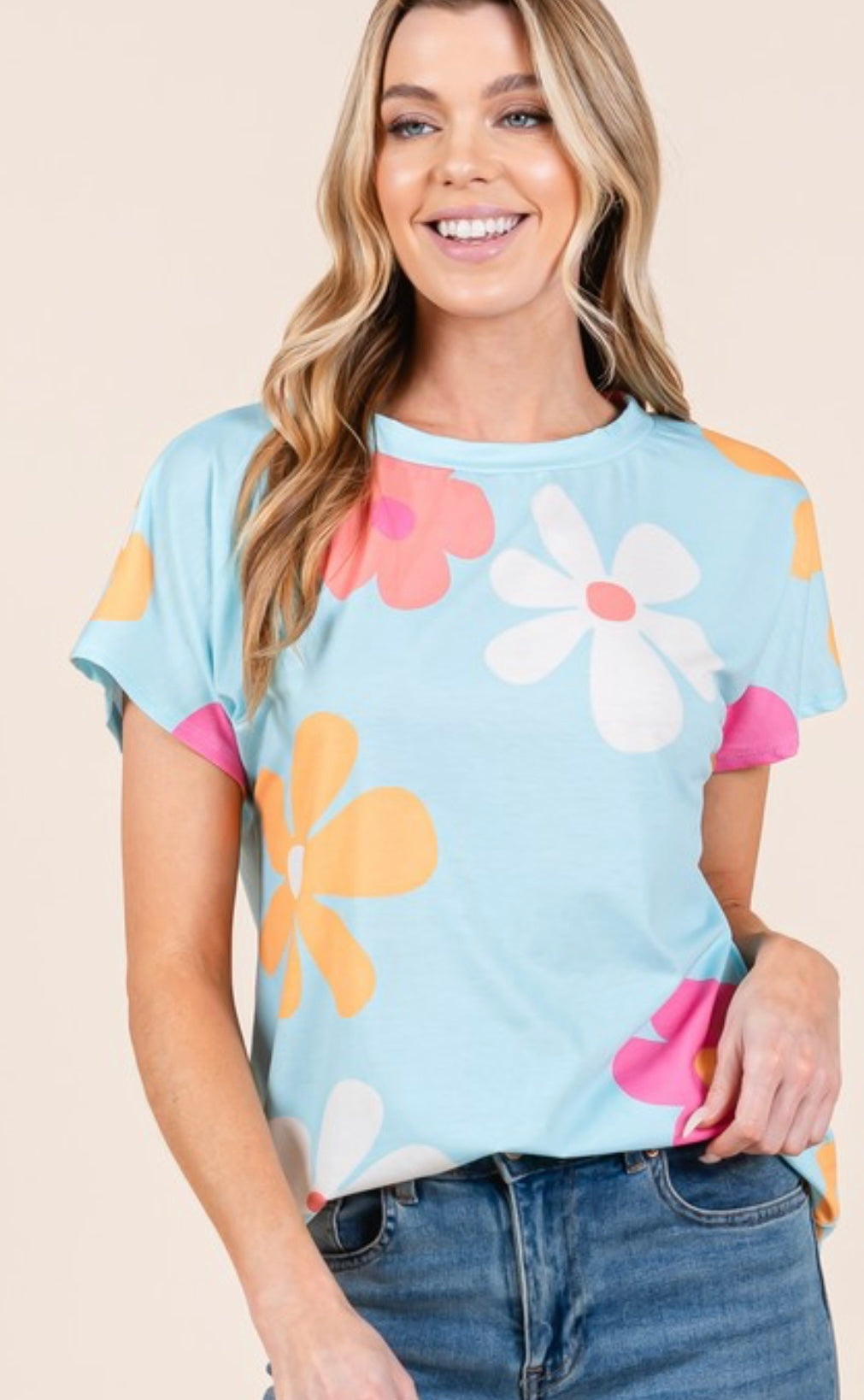 This cute and comfy outfit features a bright and summery floral design. This top runs smaller!! Made with high-quality materials, it's perfect for any summer occasion. Bring a touch of fun and color to your wardrobe with this must-have piece.