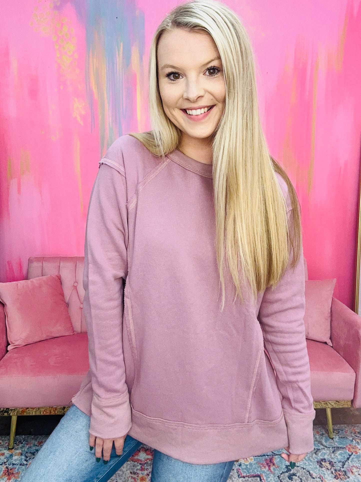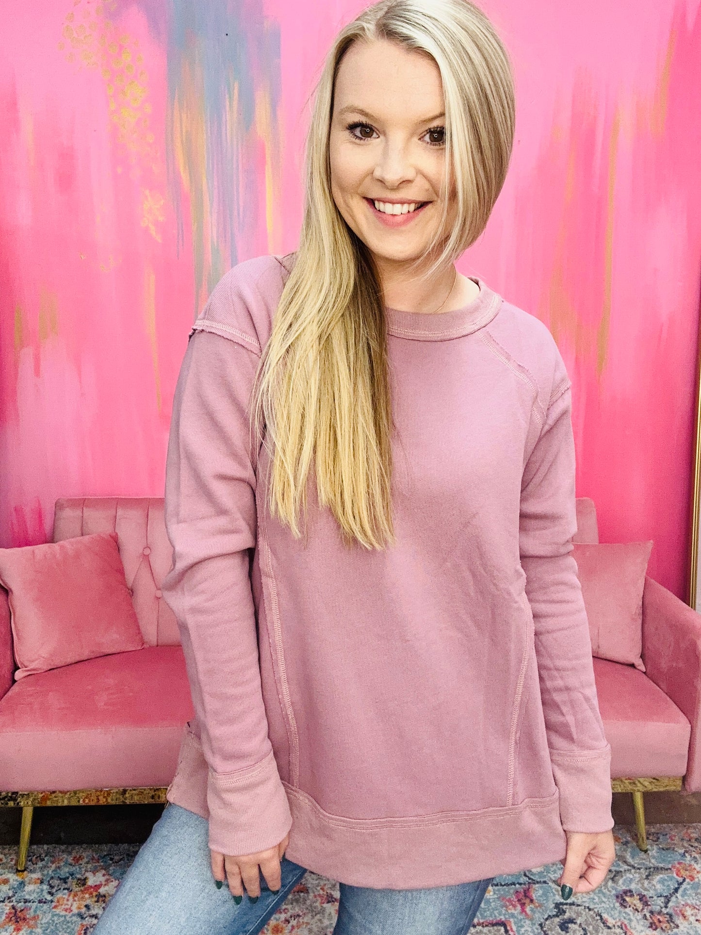 The FOR THE RECORD TOP is a comfortable knit long sleeve top designed for a snug and cozy fit. Its lightweight fabric makes it perfect for any season, while its easy care instructions make it a hassle-free wardrobe staple.