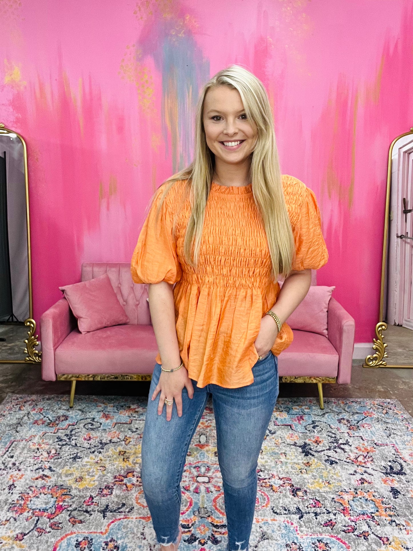 Look and feel your best in the Forgotten Romance Top. This gorgeous baby doll top features an eye-catching glossy ripple fabric, a frilled neckline, a smocked bodice, and short bell sleeves. An open back key hole adds an extra touch of femininity. Perfect for any day or night look.