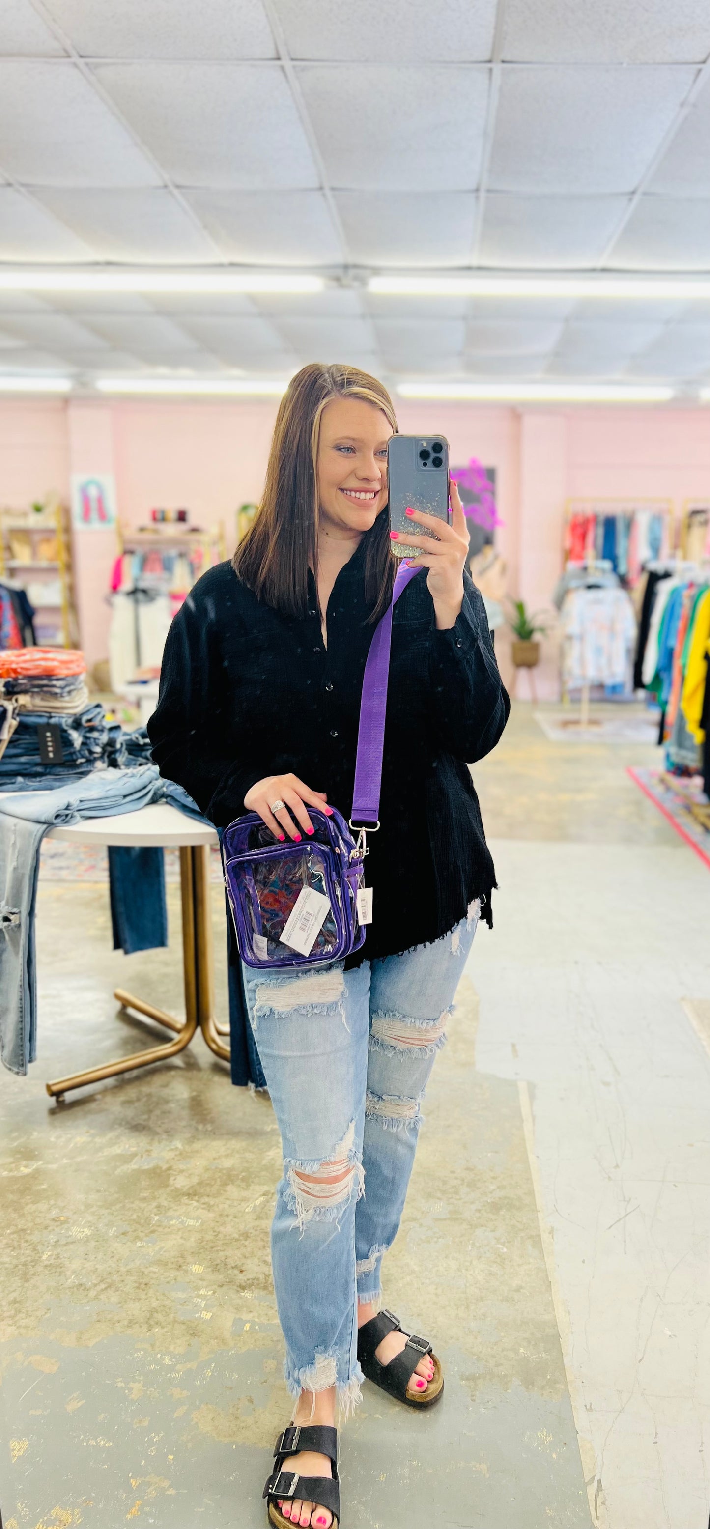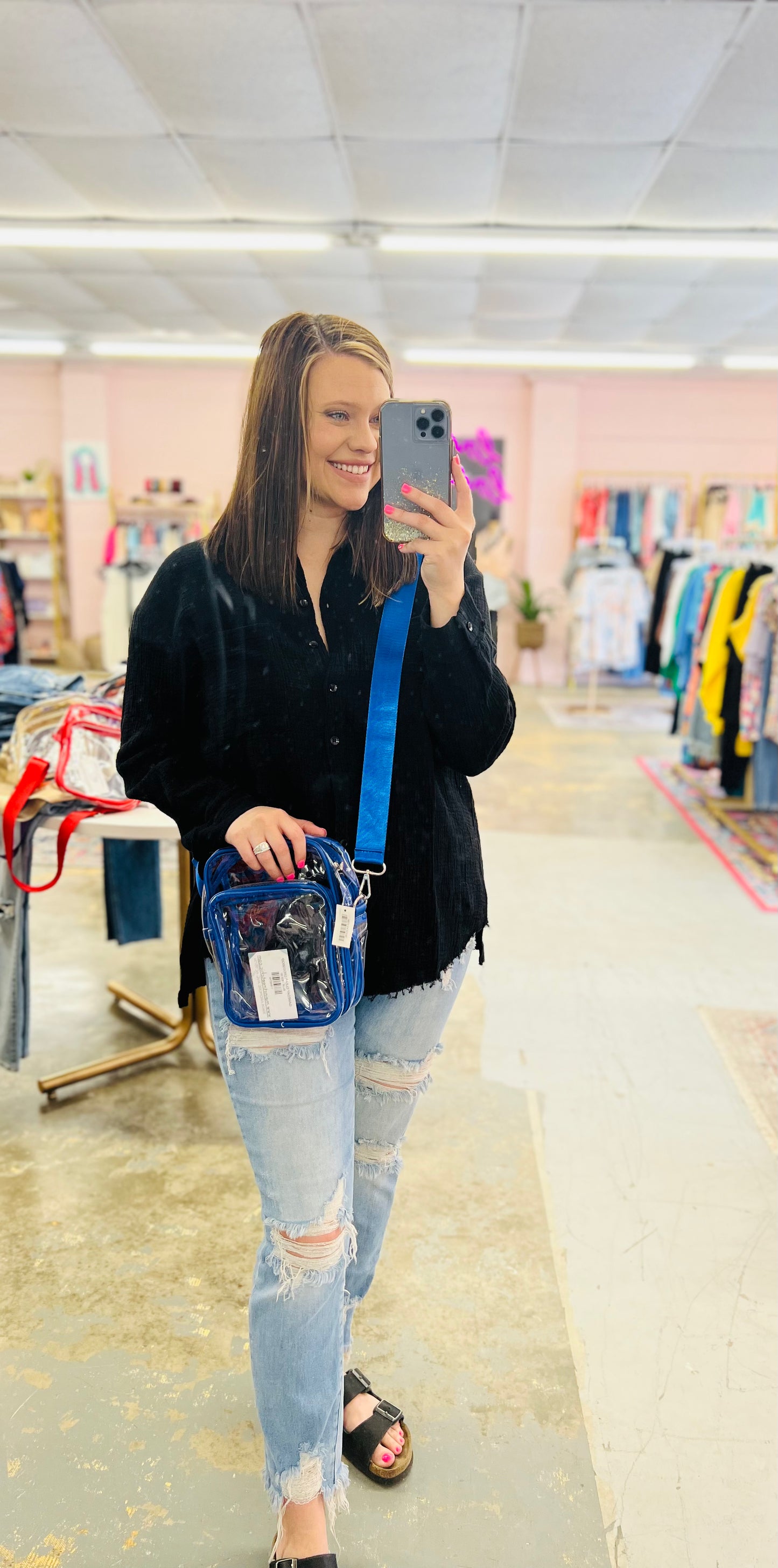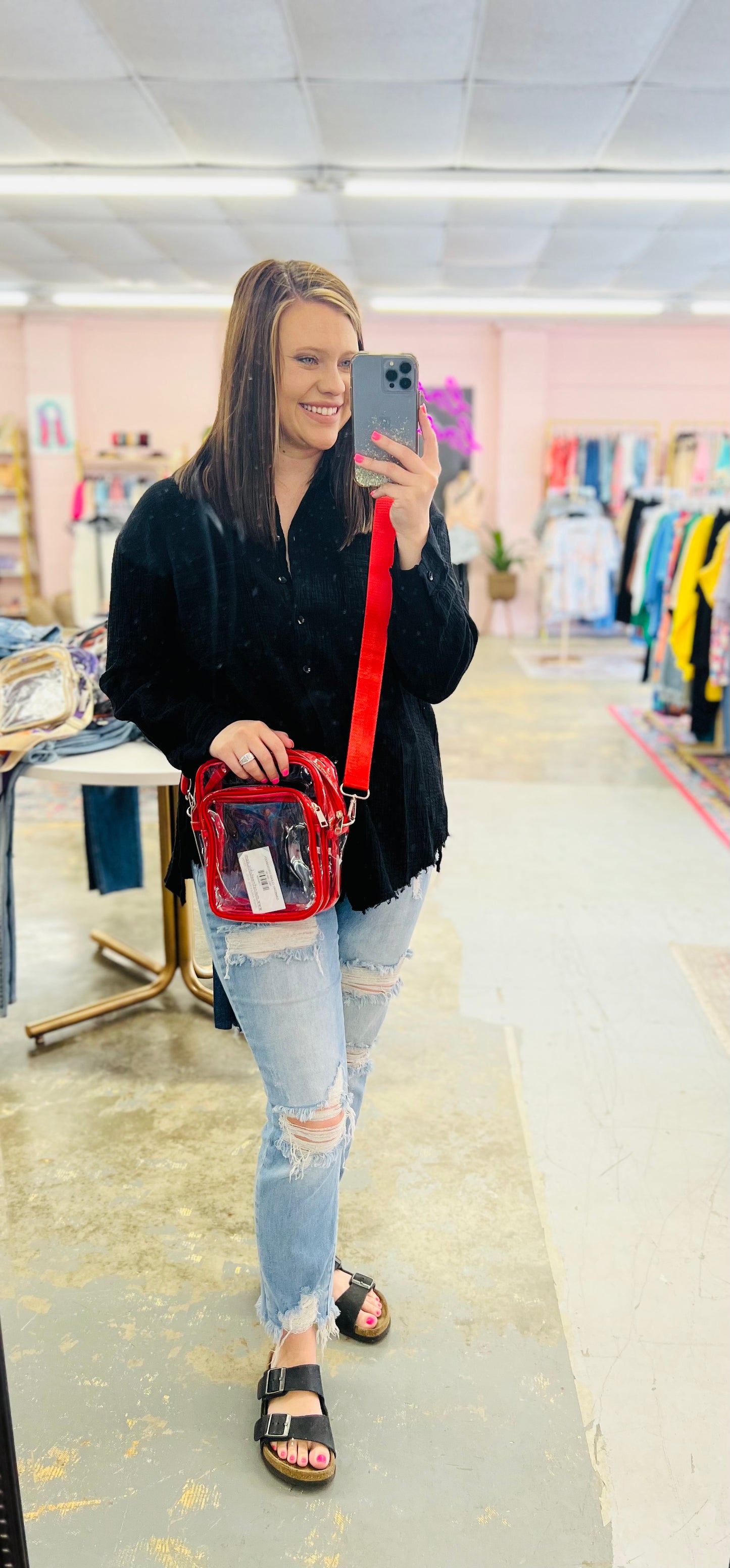 This Gameday Clear Crossbody Purse is a chic and convenient way to carry your things to the game. Its lightweight construction is an upgrade from standard clear bags and complies with stadium regulations. Durable yet stylish, this clear crossbody is the perfect way to show your team spirit.