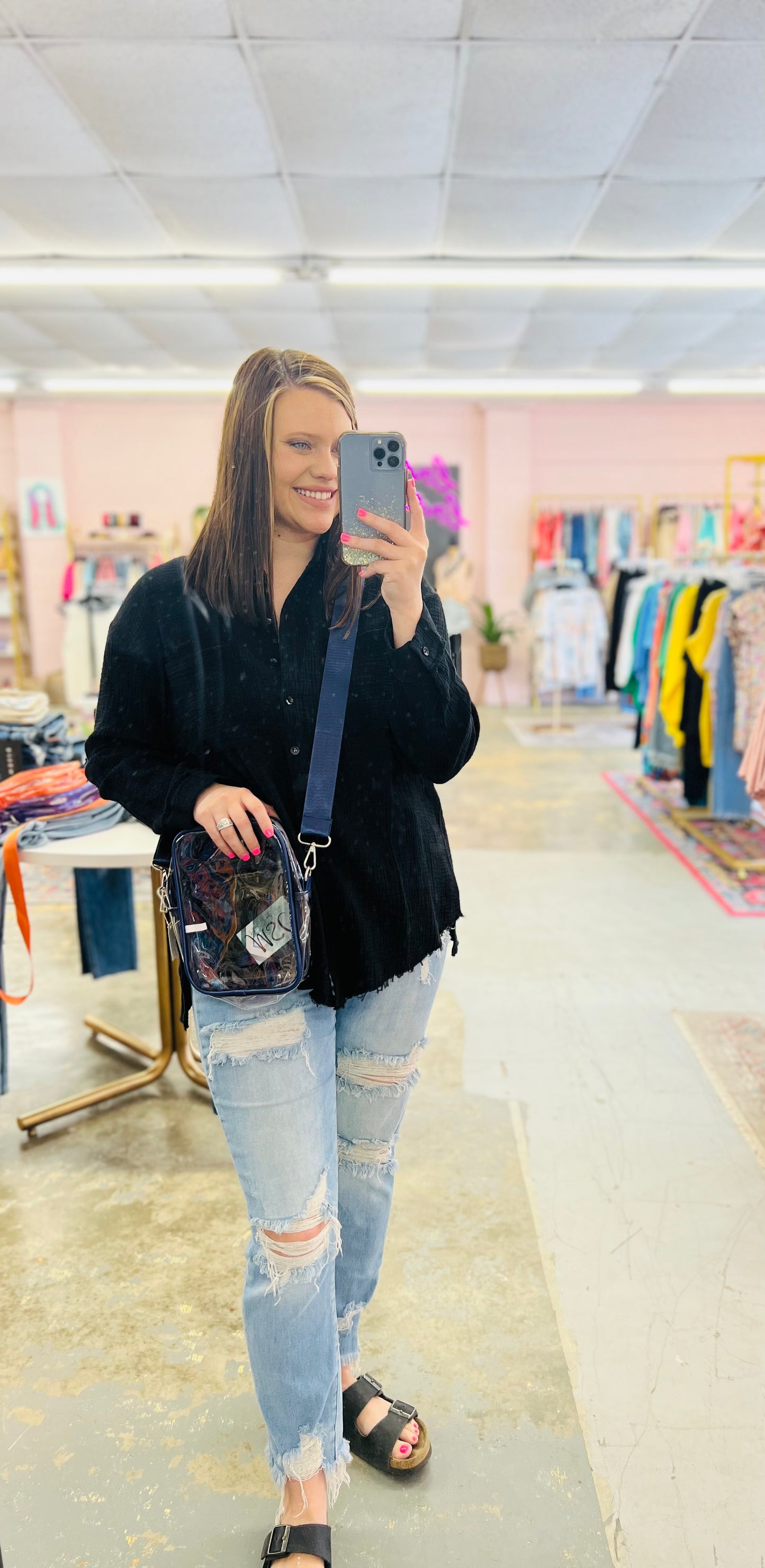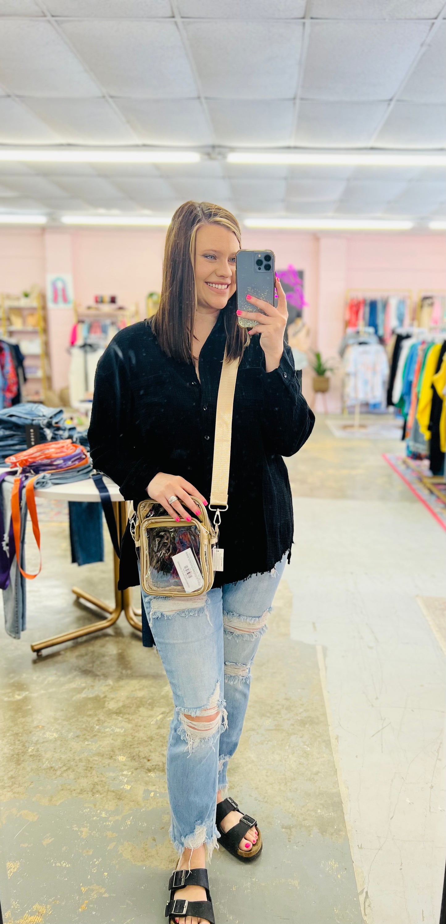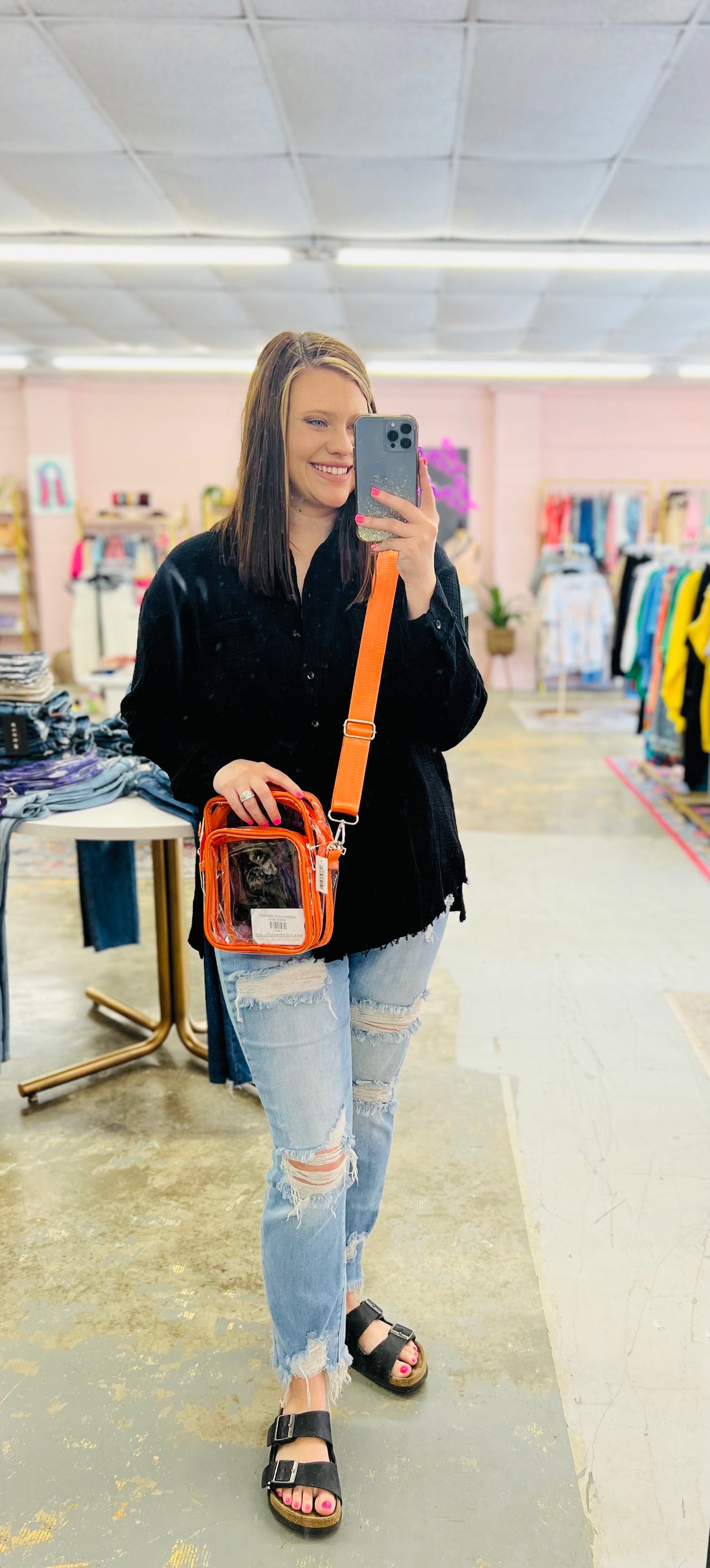 This Gameday Clear Crossbody Purse is a chic and convenient way to carry your things to the game. Its lightweight construction is an upgrade from standard clear bags and complies with stadium regulations. Durable yet stylish, this clear crossbody is the perfect way to show your team spirit.