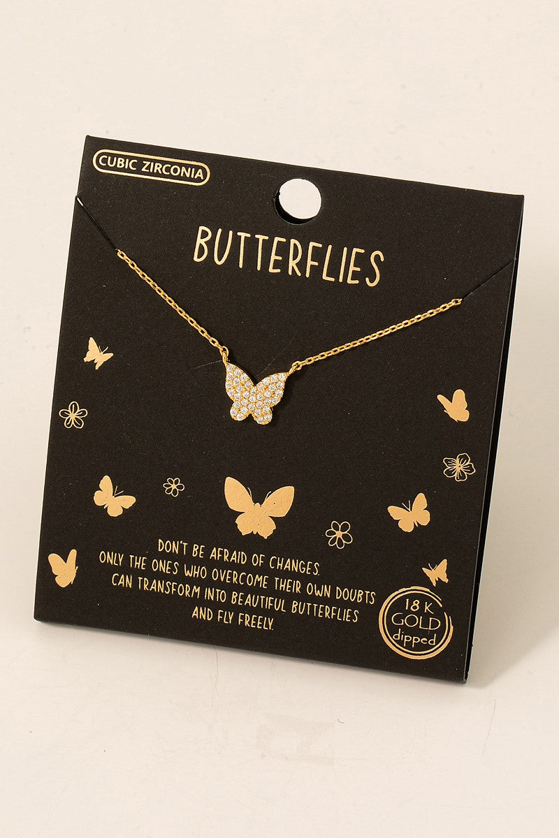 GOLD DIPPED PAVE BUTTERFLY NECKLACE