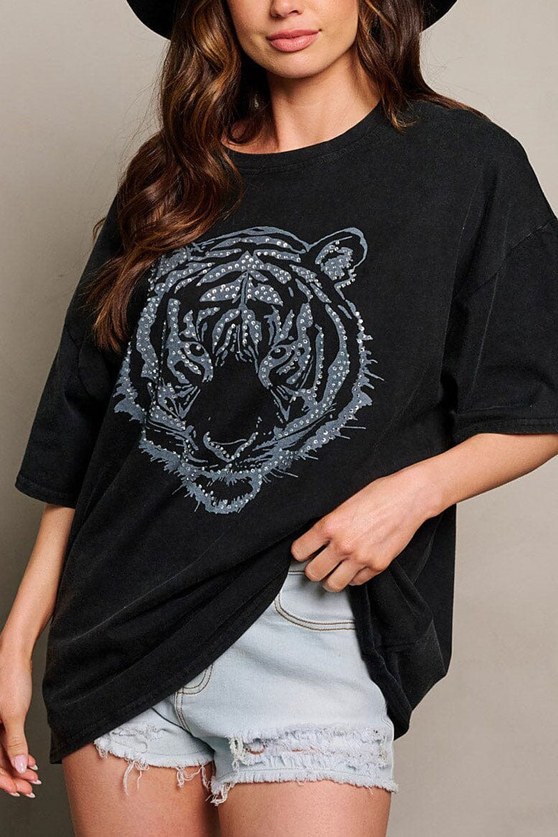 Expertly crafted with 100% cotton, this SHORT SLEEVE STUDS GRAPHIC DETAILED OVERSIZED TOP is the perfect blend of comfort and style. Its oversized fit allows for unrestricted movement, while the graphic detailing adds a touch of edginess. Elevate your wardrobe with this must-have piece.