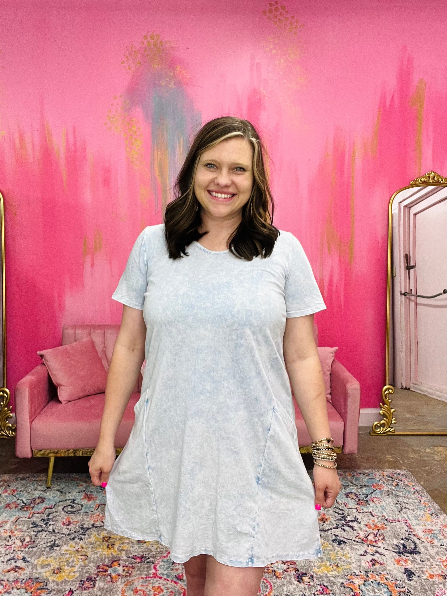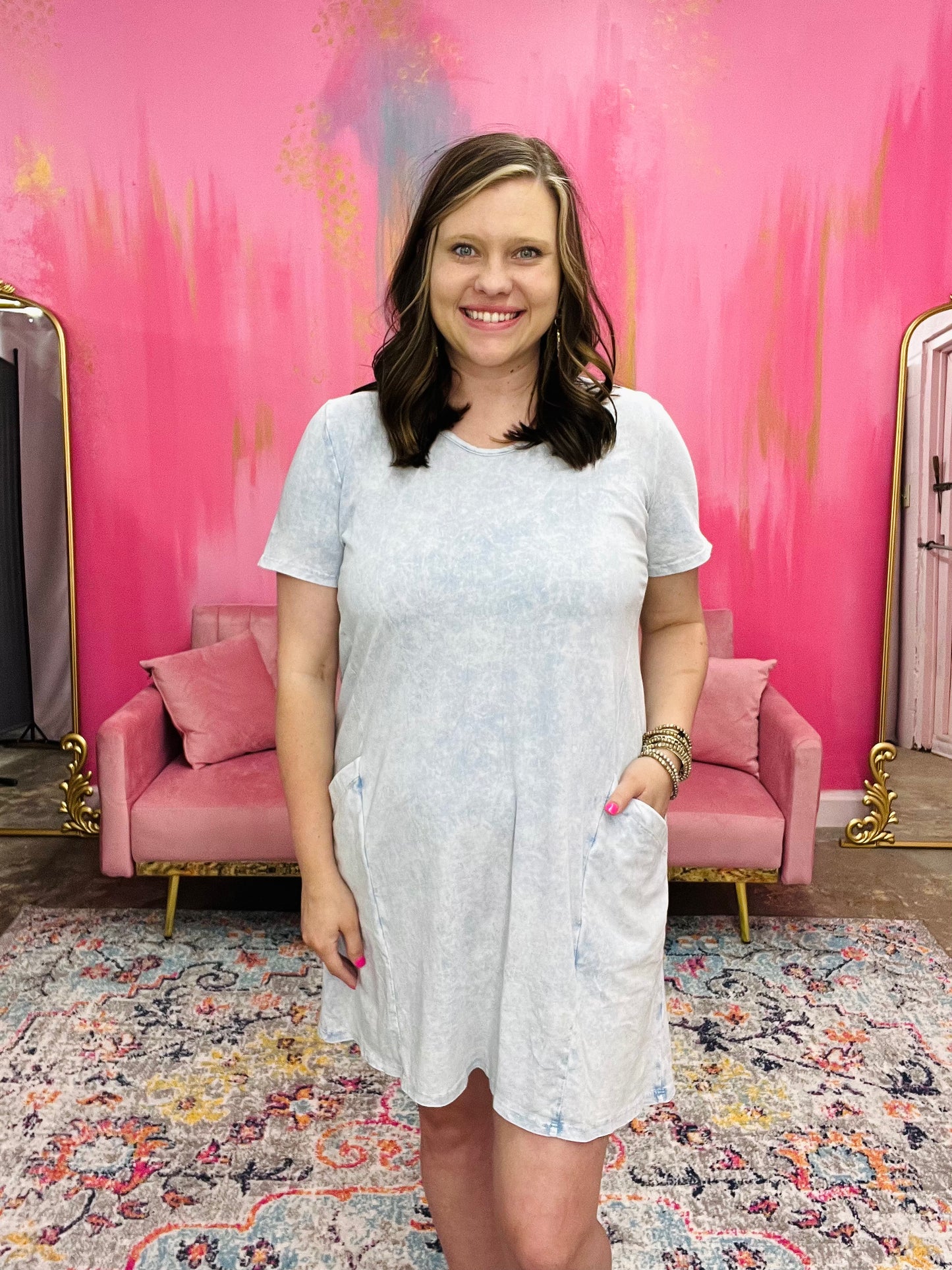 This is a casual tshirt knee length dress. This dress has side pockets and is a comfortable fit.