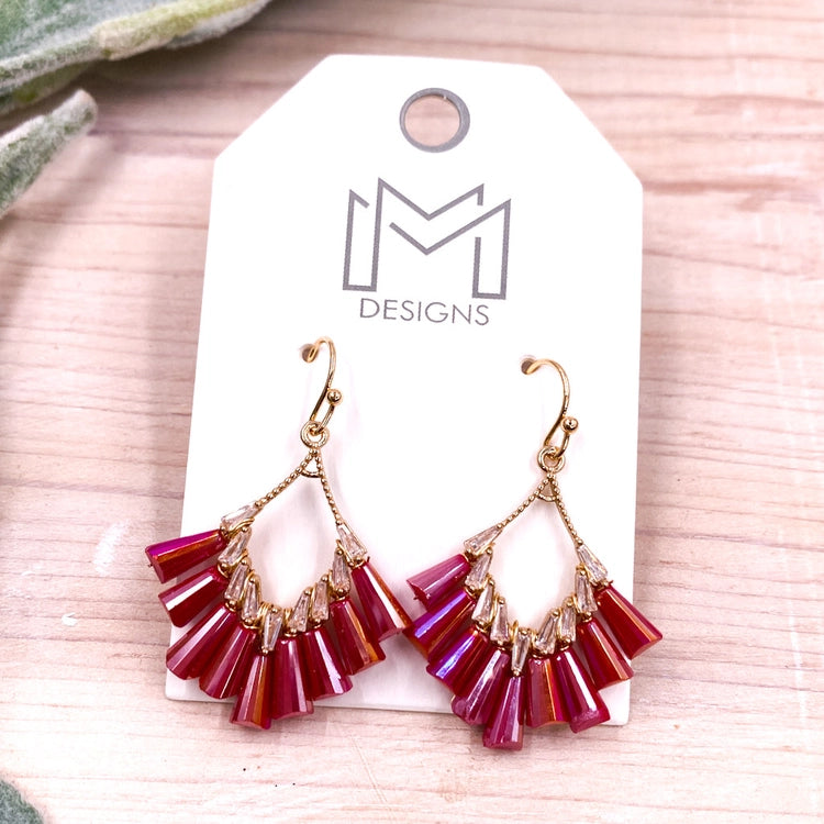 These stylish earrings are the perfect combination of Metal and Glass, creating a unique and eye-catching design. At 1 1/2" drop, they are both fashionable and comfortable. The metal is Nickel and Lead free, making them safe for everyday wear.