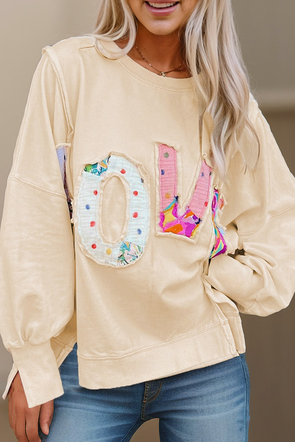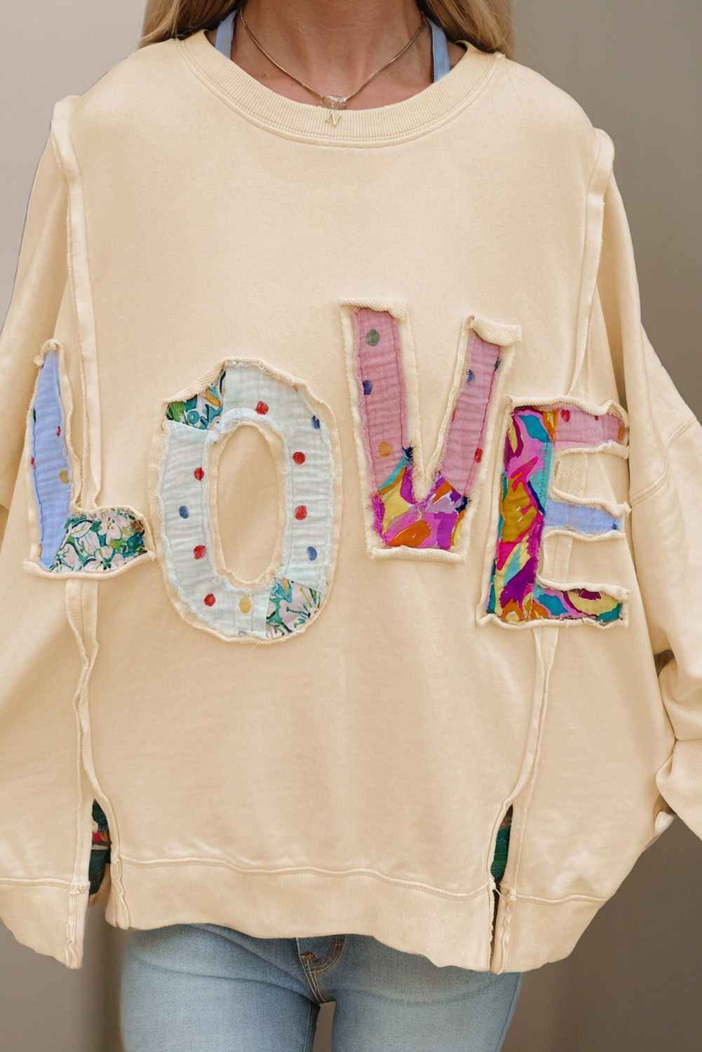 Embrace effortless style with the Apricot LOVE Side Slits Crew Neck Oversized Sweatshirt, featuring a playful letter print that adds a trendy touch to your look.