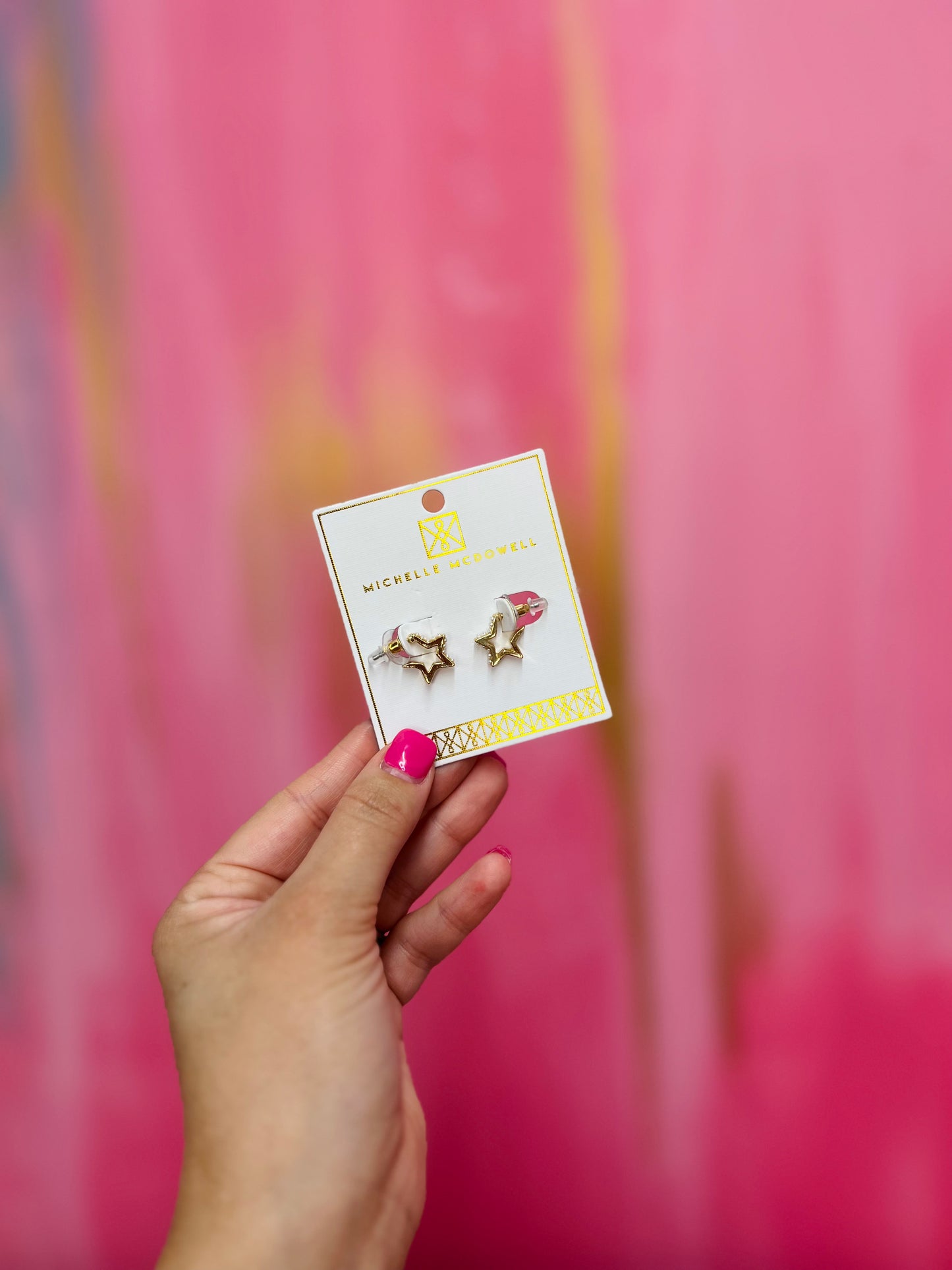 The Madison earrings are so adorable. These are so simple and so cute. They are a star earring with a post back, and have pearl accents.