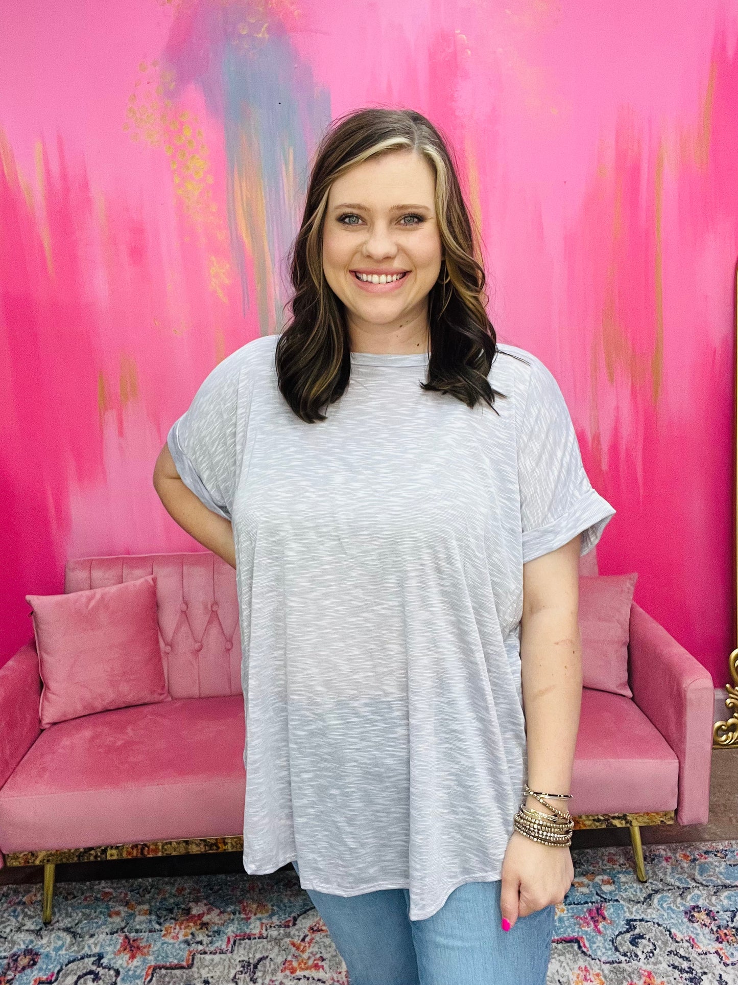 The MAKING STRIDES TOP is a stylish and comfortable roll sleeve blouse made of rayon slubby fabric. Its lightweight material ensures breathability and flexibility, while its timeless design ensures a classic look. This top is perfect for any occasion.