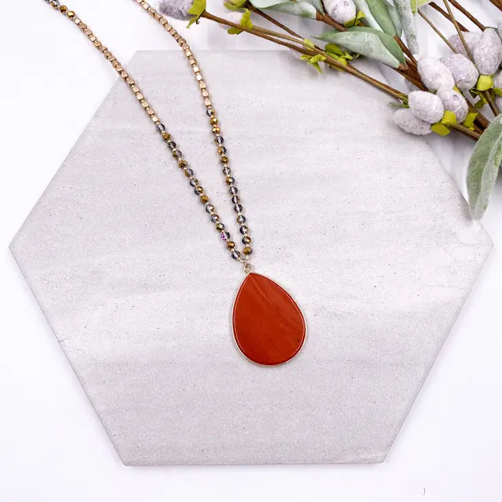 Expertly crafted with a 32" length, this versatile accessory is made with high-quality materials, ensuring it is nickel and lead free. The combination of stone, metal, wood, and glass creates a unique and stylish look suitable for any occasion.