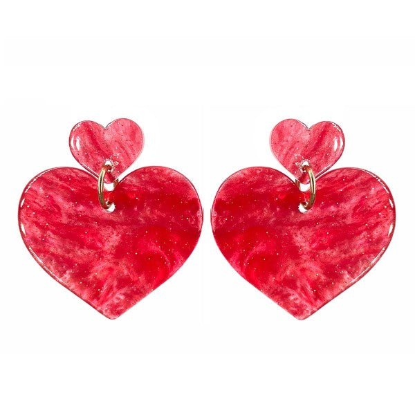 Adorable Glitter Resin Heart Drop Earrings. Approximately 1.25" Long.