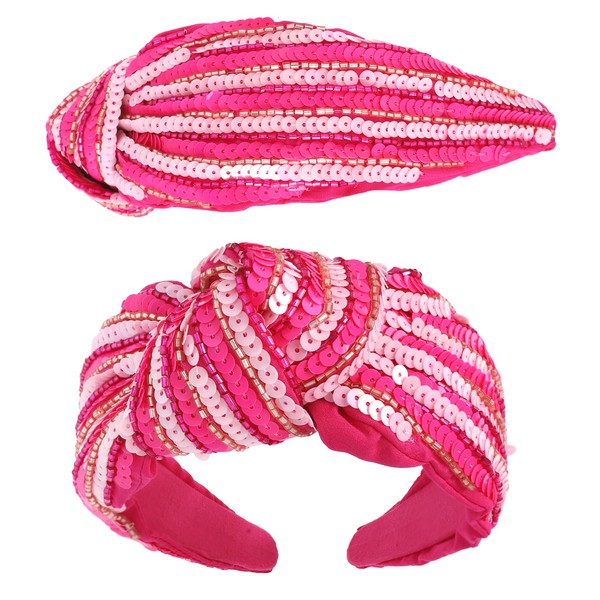 SEQUIN STRIPED TOP KNOTTED EMBELLISHED HEADBAND