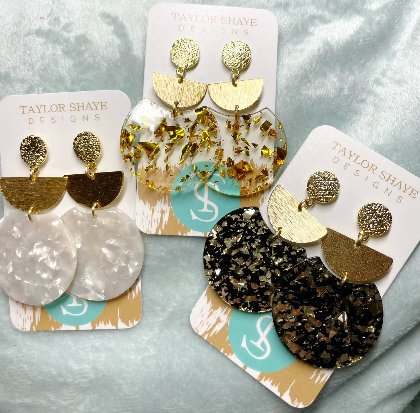 These are Taylor Shaye earrings and they are the prettiest. These have a gold flake detail.