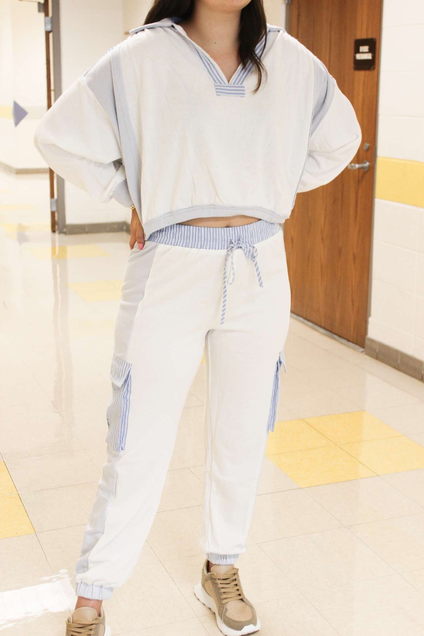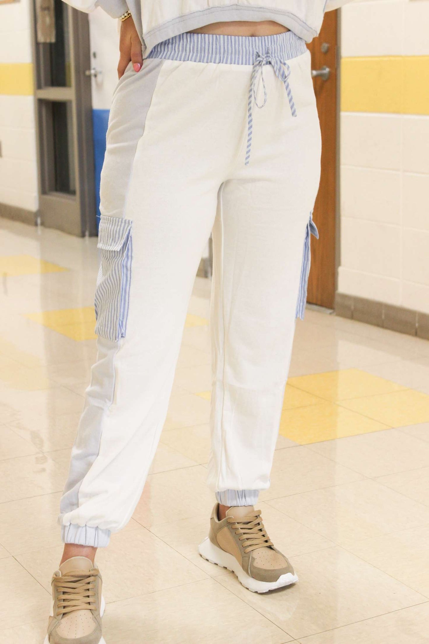 Expertly crafted with a blend of cotton terry and striped fabric, this product offers ultimate comfort and style. The addition of cargo pockets allows for convenient storage while on the go. The elastic waistband with front tie ensures a perfect fit every time. Upgrade your wardrobe with this must-have item.