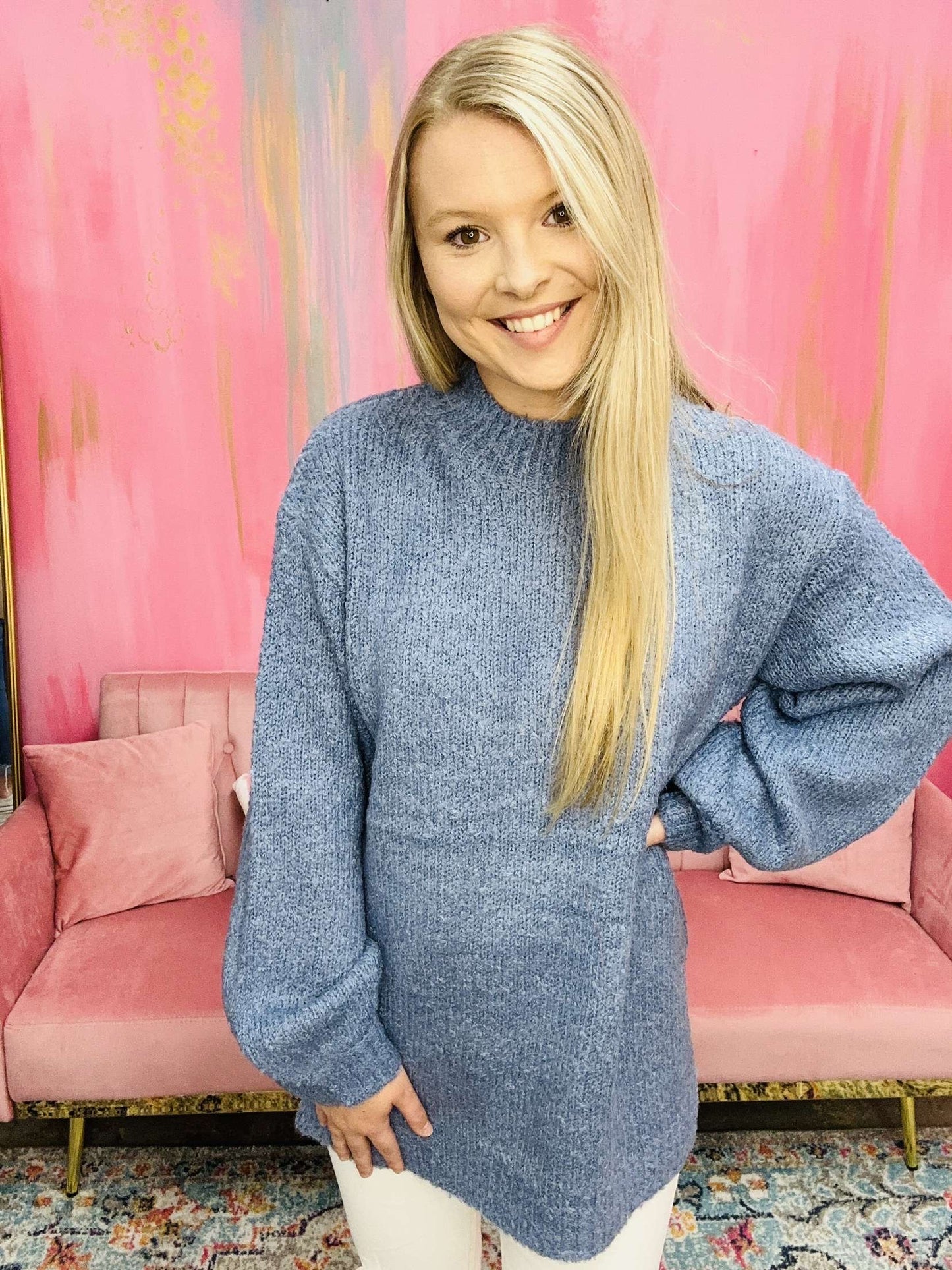 Discover the effortless comfort of the Tamia Sweater. Crafted from a soft knit fabric, this mock neck sweater is perfect for everyday wear. The Tamia Sweater adds an element of chic to any lounge outfit without compromising on style.