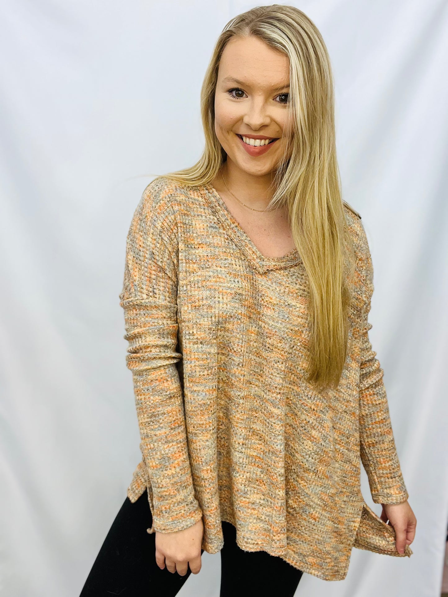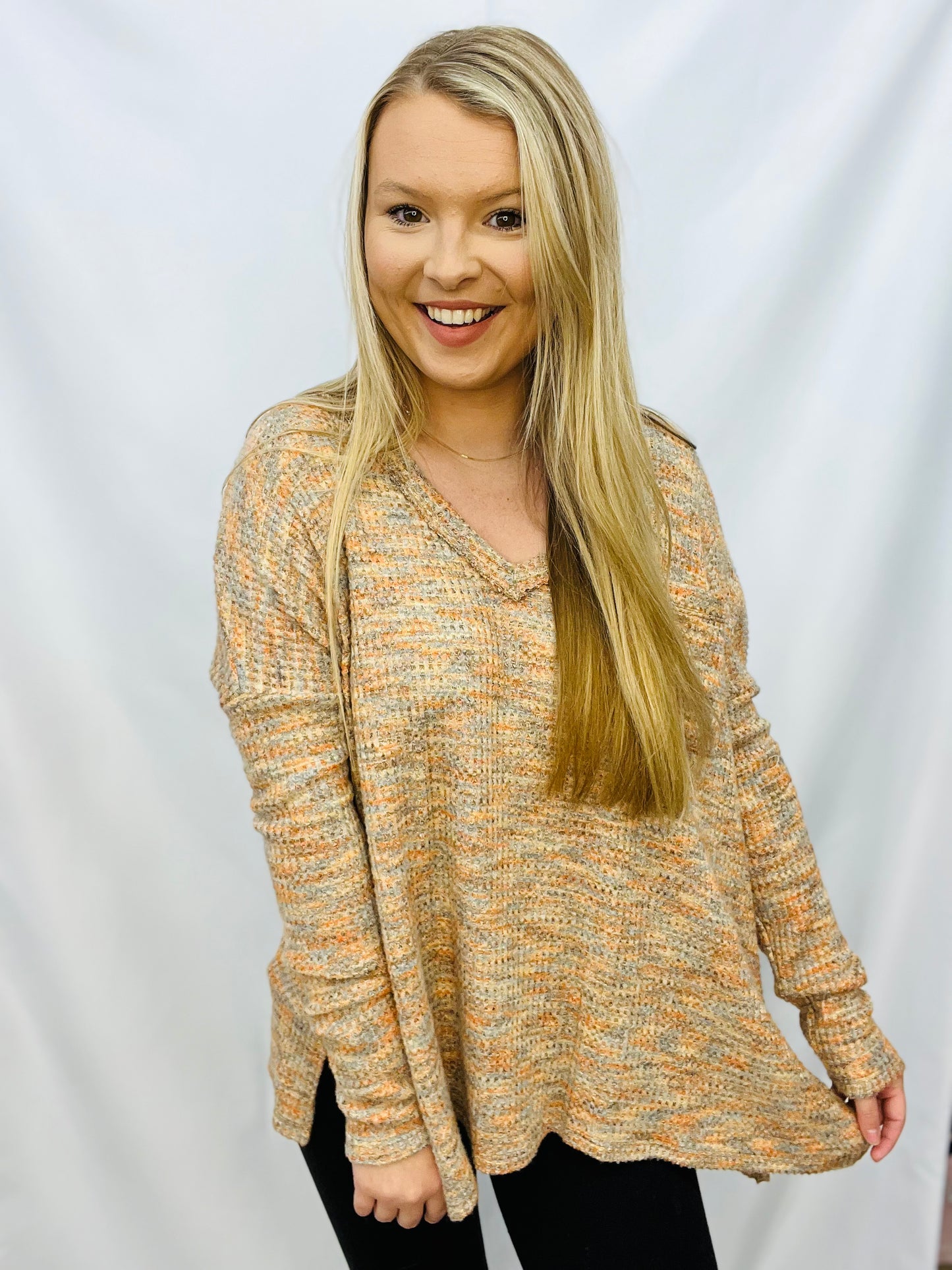 Stay warm and stylish in this cozy V-neck sweater top. Crafted with quality materials, this sweater is sure to last season to season. Enjoy a comfortable fit and look your best with this timeless piece.