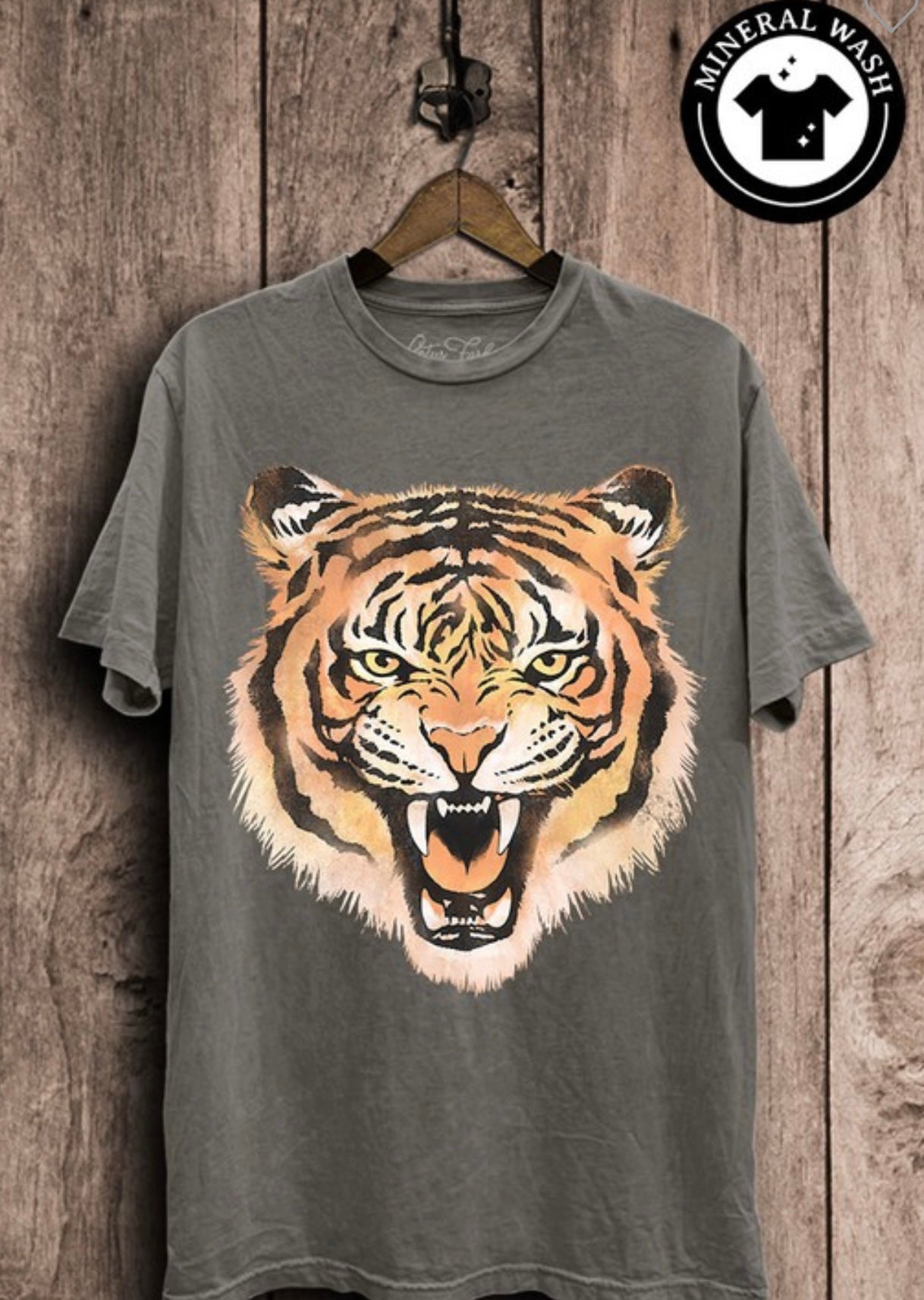 This TIGER HEAD TEE boasts a comfy fit and eye-catching graphic, perfect for adding a touch of style to any casual outfit. Made of soft fabric and featuring a unique mineral wash, it's a wardrobe must-have for both comfort and fashion.