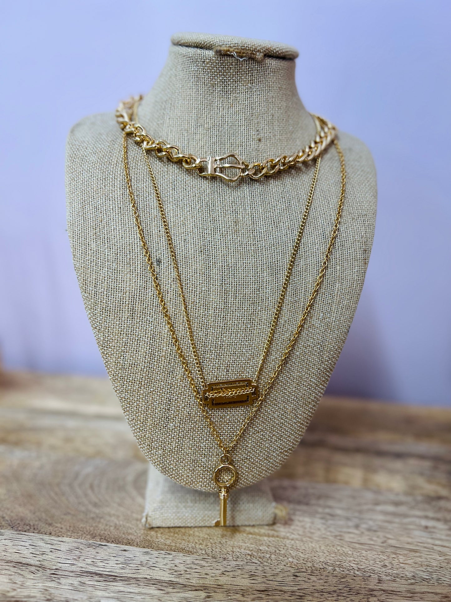 TRIPLE LAYER KEY DETAIL GOLD NECKLACE