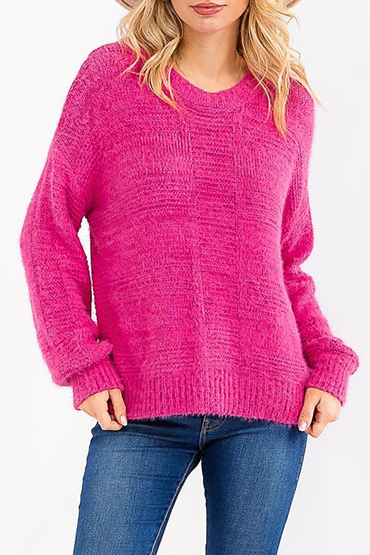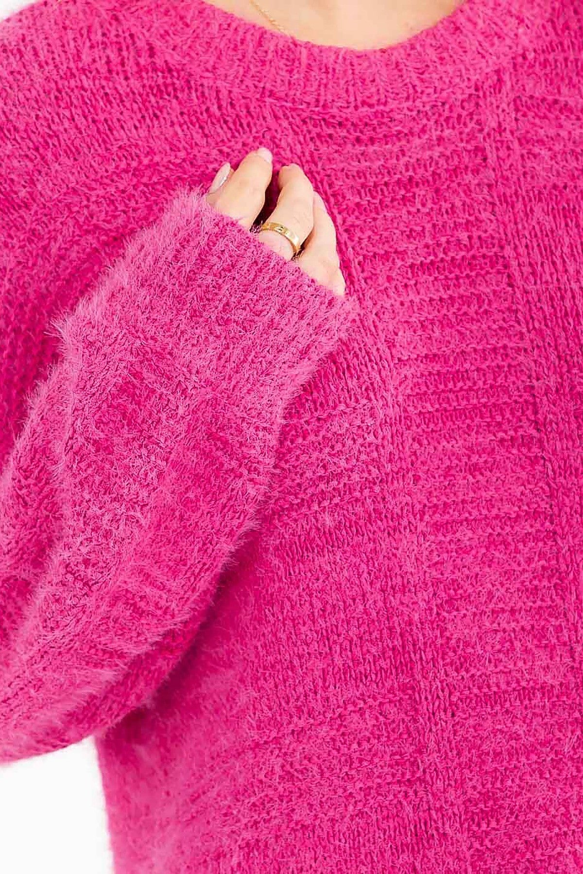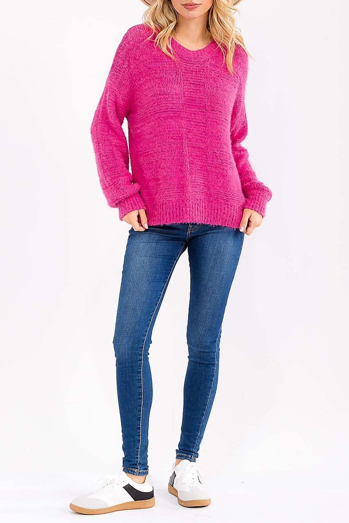 This versatile fuzzy knit pullover combines softness with durability, crafted from a premium blend of 85% polyester and 15% polyamide. The classic round neck design offers timeless appeal, while the plush texture adds warmth and comfort for everyday wear. The polyamide content enhances stretch and resilience, ensuring the sweater maintains its shape through repeated wear and washing. Perfect for layering or wearing solo, this solid-colored pullover transitions seamlessly from casual to polished looks.
