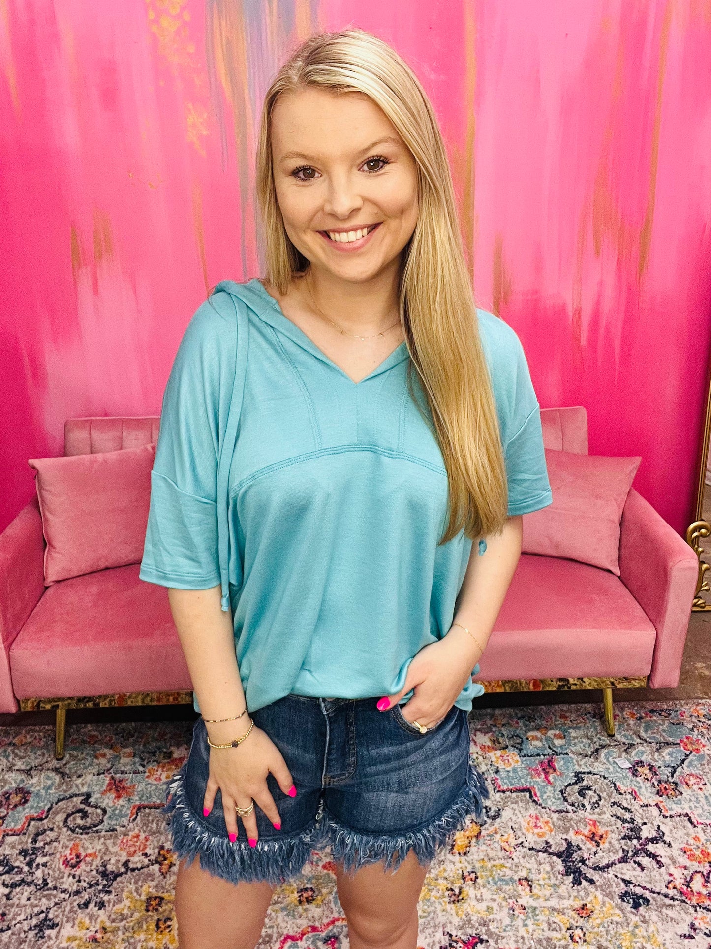 Look your best in this lightweight knit top. This short sleeve piece features a drawstring hood and a true-to-size fit for a comfortable, flattering silhouette. The adjustable drawstrings allow you to customize the look to fit your style.