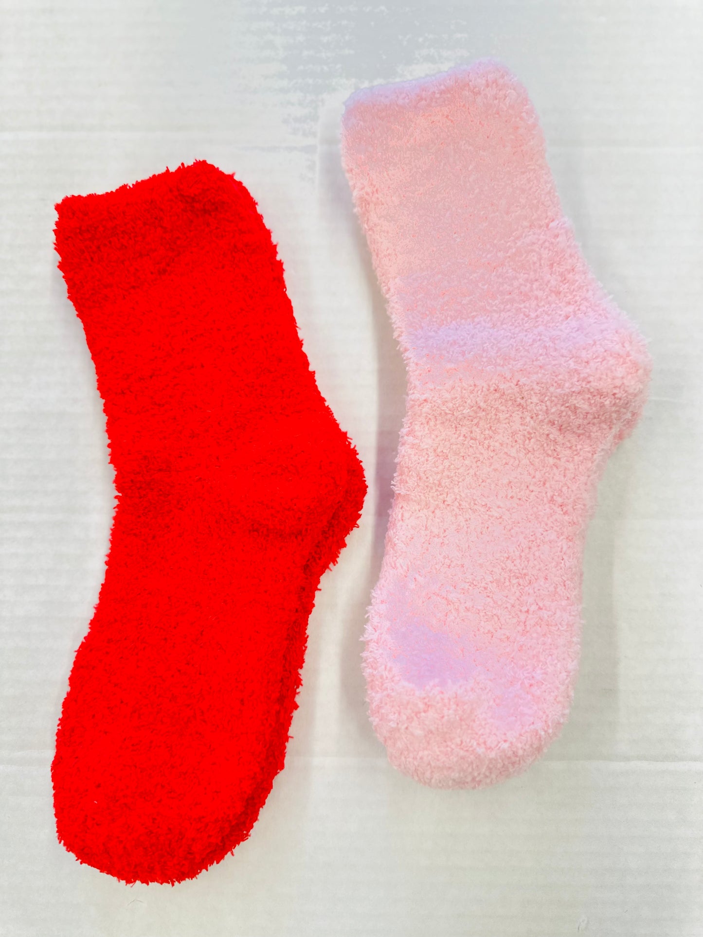 PINK AND RED FUZZY SOCKS