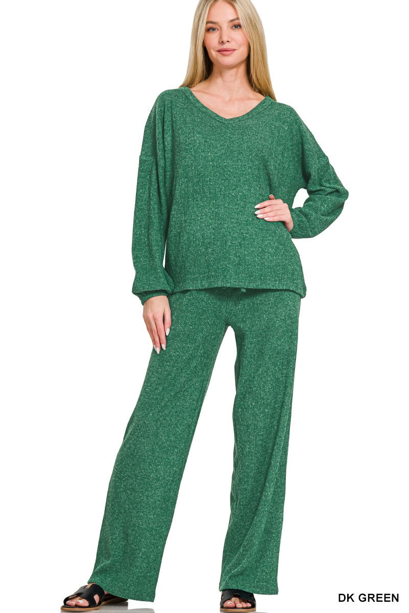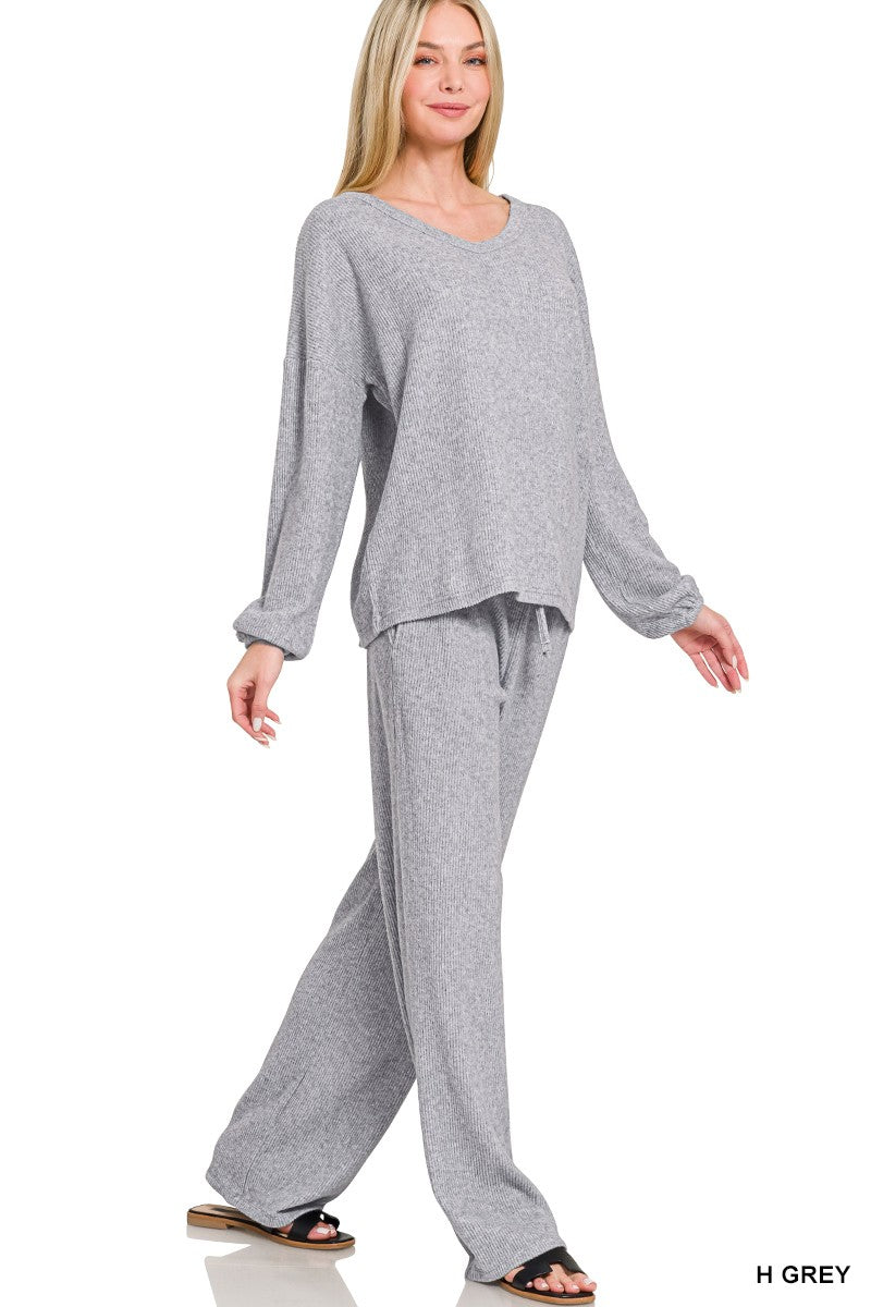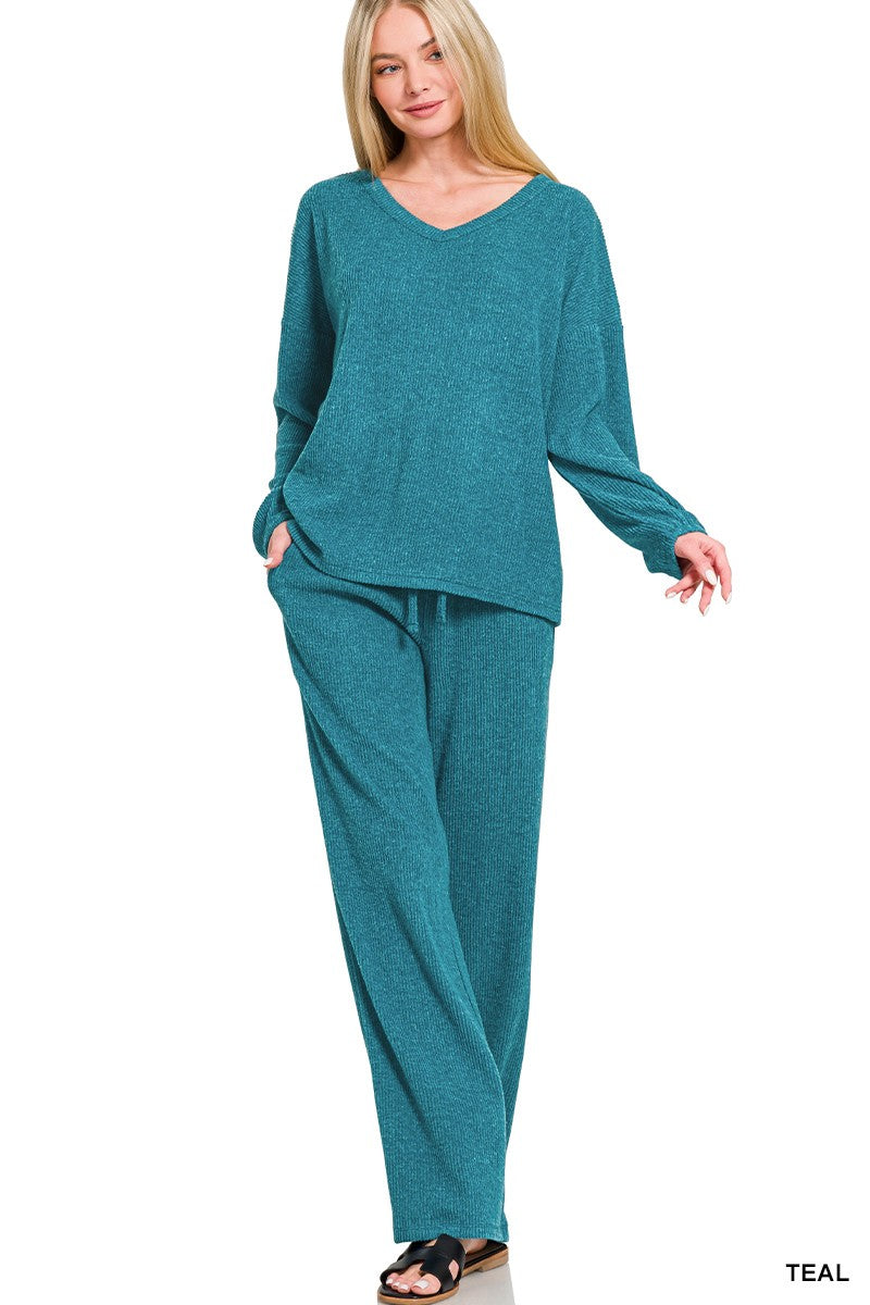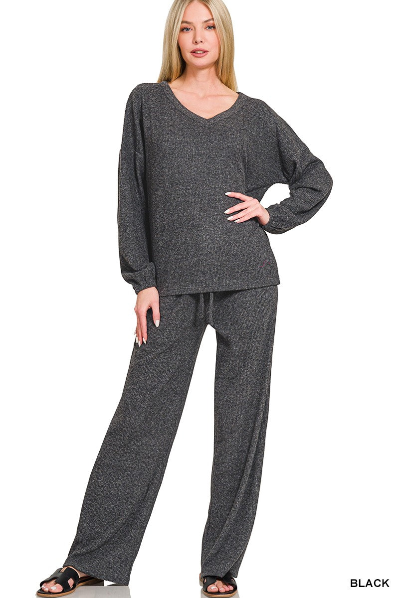 This BRUSHED HACCI LONG SLEEVE & PANTS SET offers a cozy and comfortable option for your everyday wear. Made with soft, brushed hacci fabric, it will keep you warm during cooler days. The set includes a long sleeve top and pants for a complete and stylish look. Perfect for lounging or running errands.