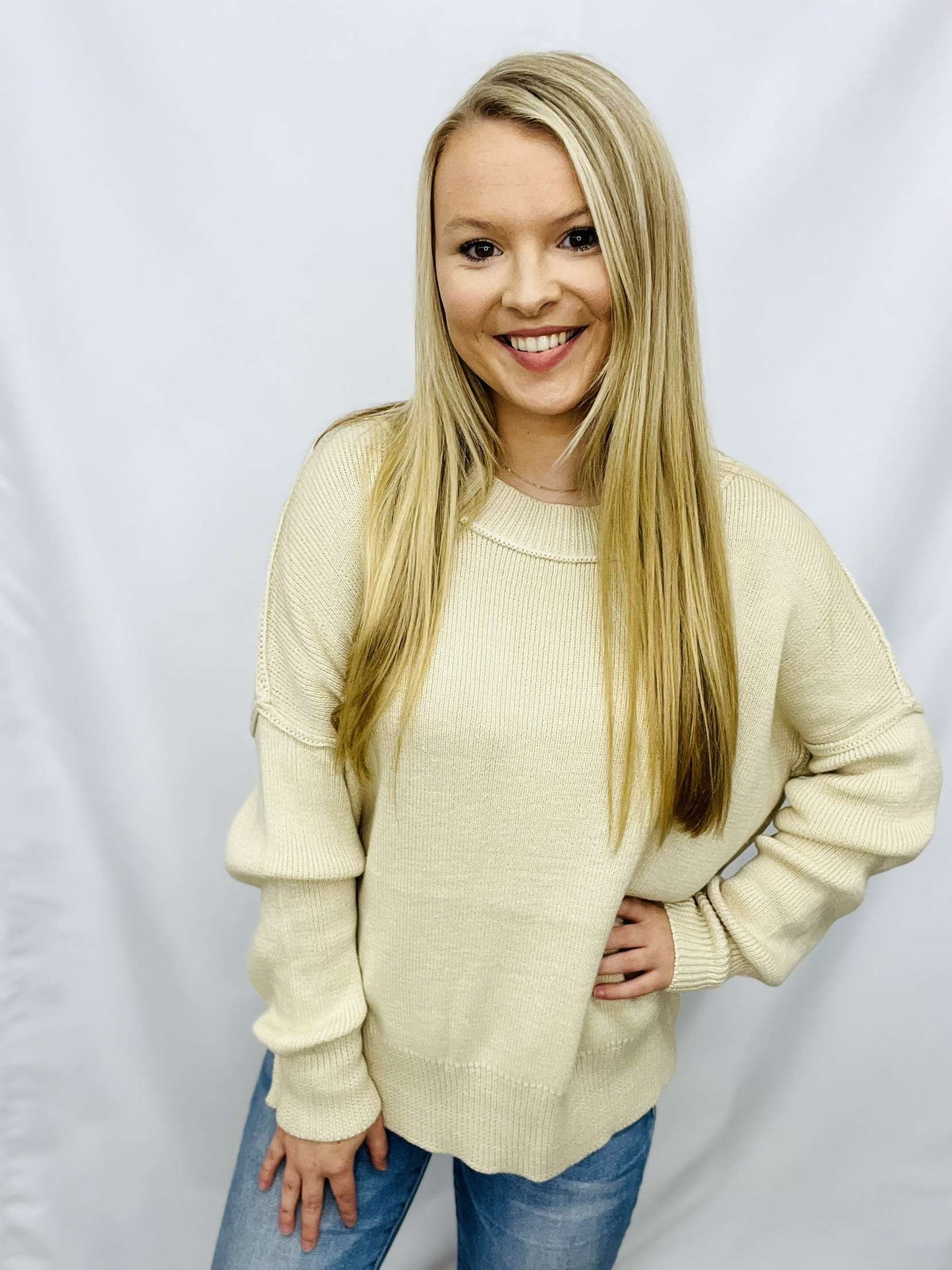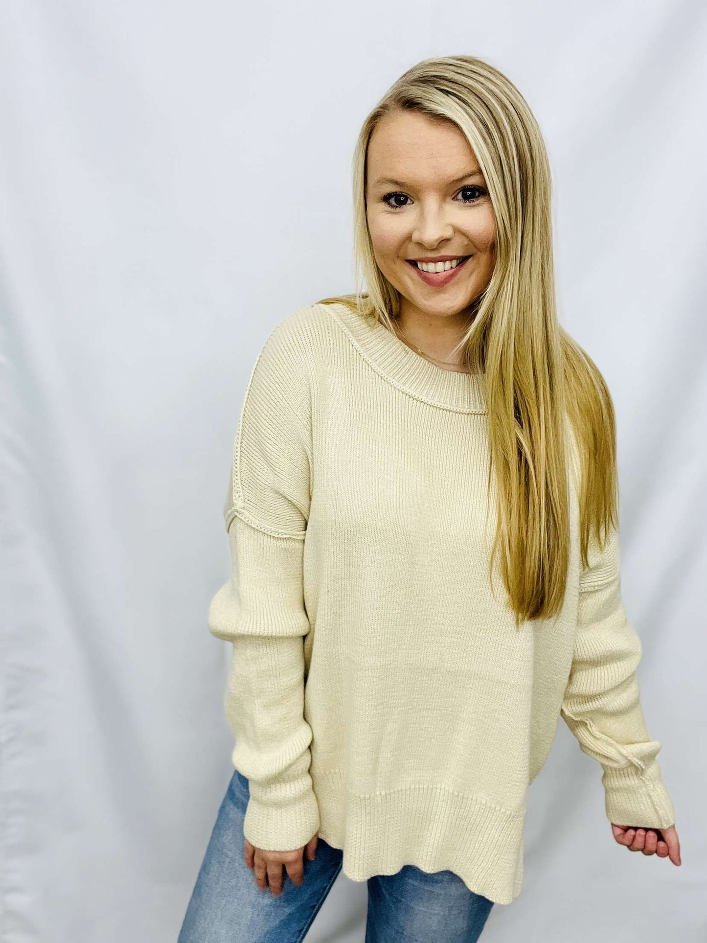 The WORK OF ART TOP is the perfect update to your wardrobe. Crafted with a solid sweater fabric, this top features a boat neck, dropped shoulder, and long sleeves. Detailed with a slit hem, it makes for a timeless piece.